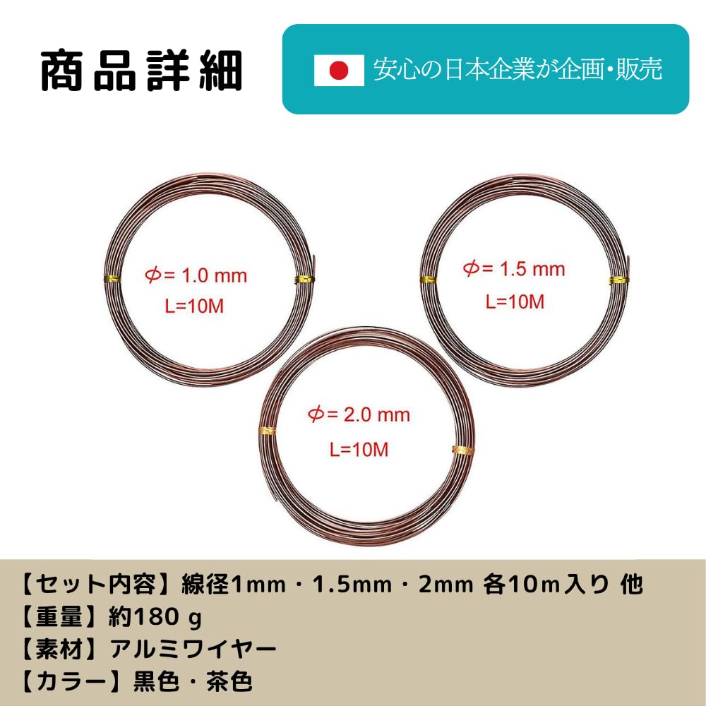 PLEAVIT 盆栽 針金 ワイヤー アルミ線 1mm 1.5mm 2mm (茶)