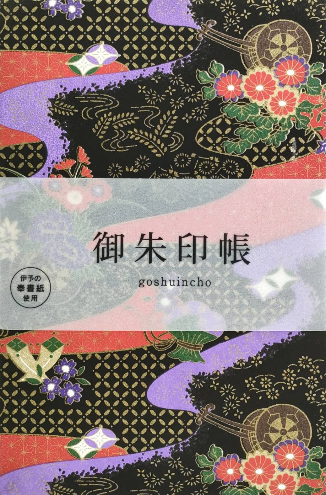 【数量限り】(Bridgehappy) 御朱印帳 大判 182×121mm 御城印 集印帳 御朱印 蛇腹 納経帳 (花御所車 黒)