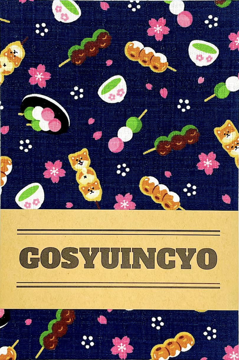 【人気】【柴犬だんご】大判サイズ 御朱印帳・蛇腹タイプ・12山24頁(片面使い)/24山48頁(両面使い) (紺)