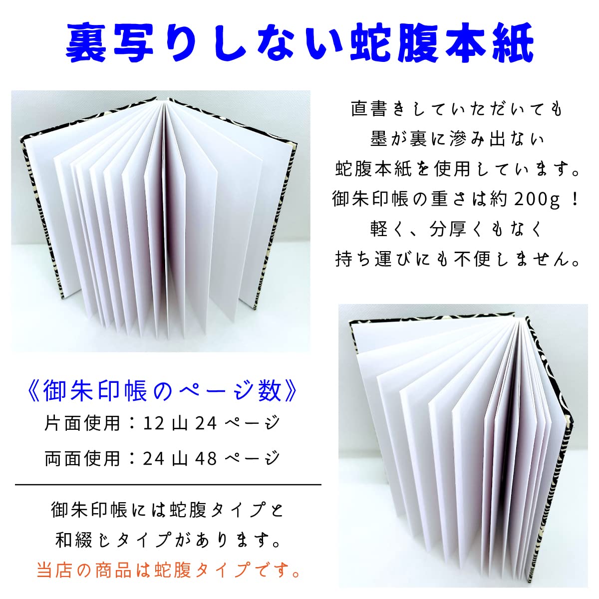 【蛇腹本紙】白色/墨が裏面に染み出ない高品質の蛇腹本紙を使用