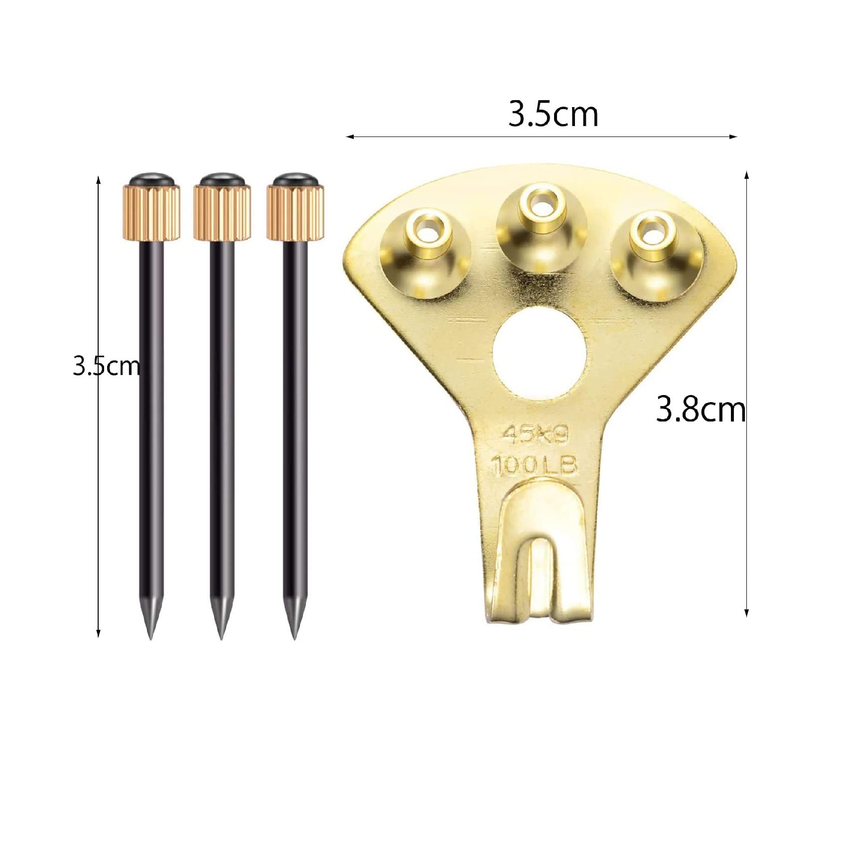 10セット 壁掛けフック 額縁展示用吊り金具 絵画吊り下げ金具 セフティステンレス 壁フック 1フック 3釘付き 最大耐荷重45kgまで対応