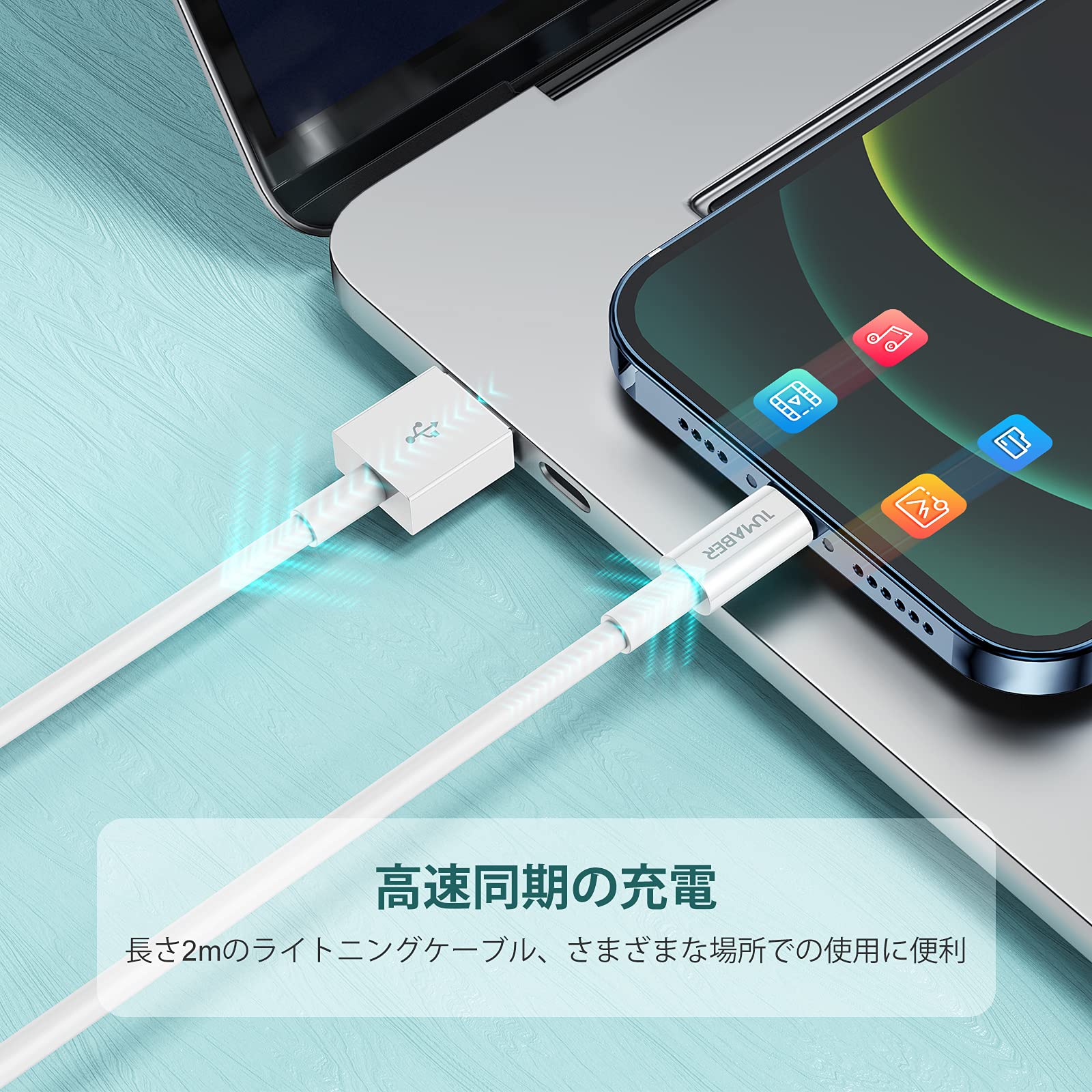 CyvenSmart iPhone 充電ケーブル 2m ライトニングケーブル 3本セット【Apple MFi認定】、2.4A急速充電 対応iPhone 14/13/13pro/12/11/11Pro/11Max/ X/XS/XR/XS Max/8/7/6/5S/SE多種対応 (ホワイト, 2m*3)