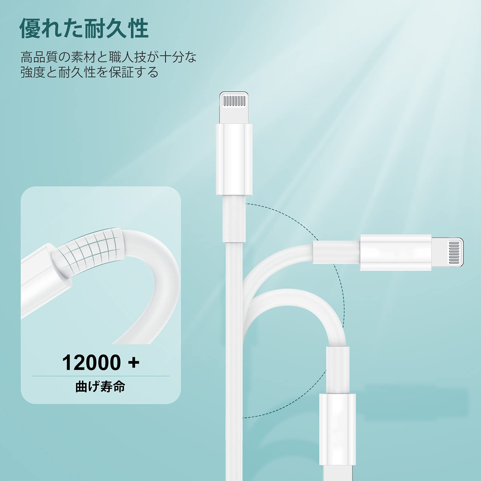 【優れた耐久性】Apple充電コードは、高品質の耐熱アルミニウム合金で作られた12000倍以上の強化コネクタ設計を採用し、端子は強化されて耐久性があり、強度を維持しながら日常の摩耗に耐えることができます。