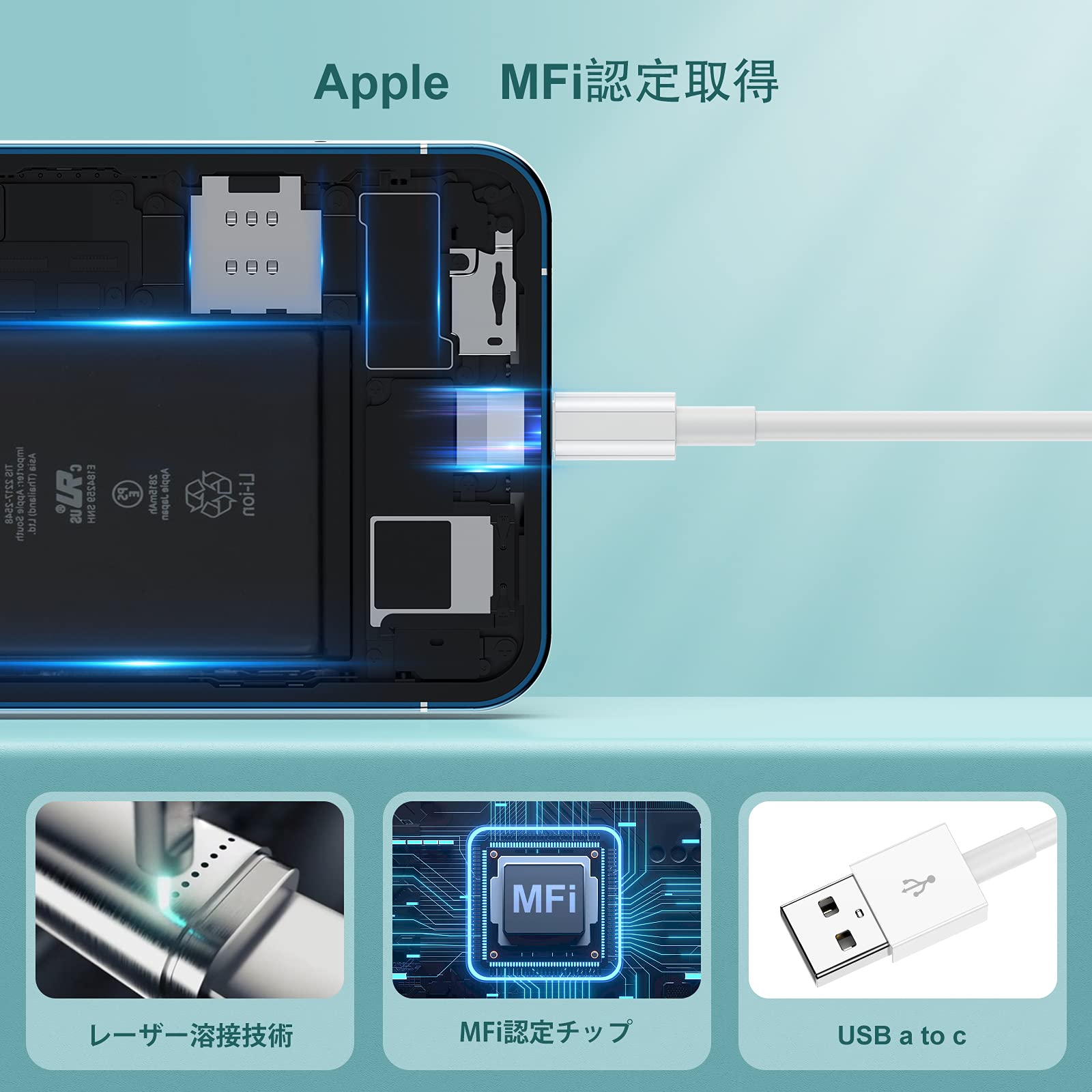 【急速充電】高品質の銅線を使用して、iPhone充電器の充電速度とデータ転送速度を向上させます。私たちの技術は、より速い充電時間をすると同時に、あなたのiPhone充電器ケーブルデバイスが完全に安全であることをします。充電中の過熱や過充電を防ぎます。