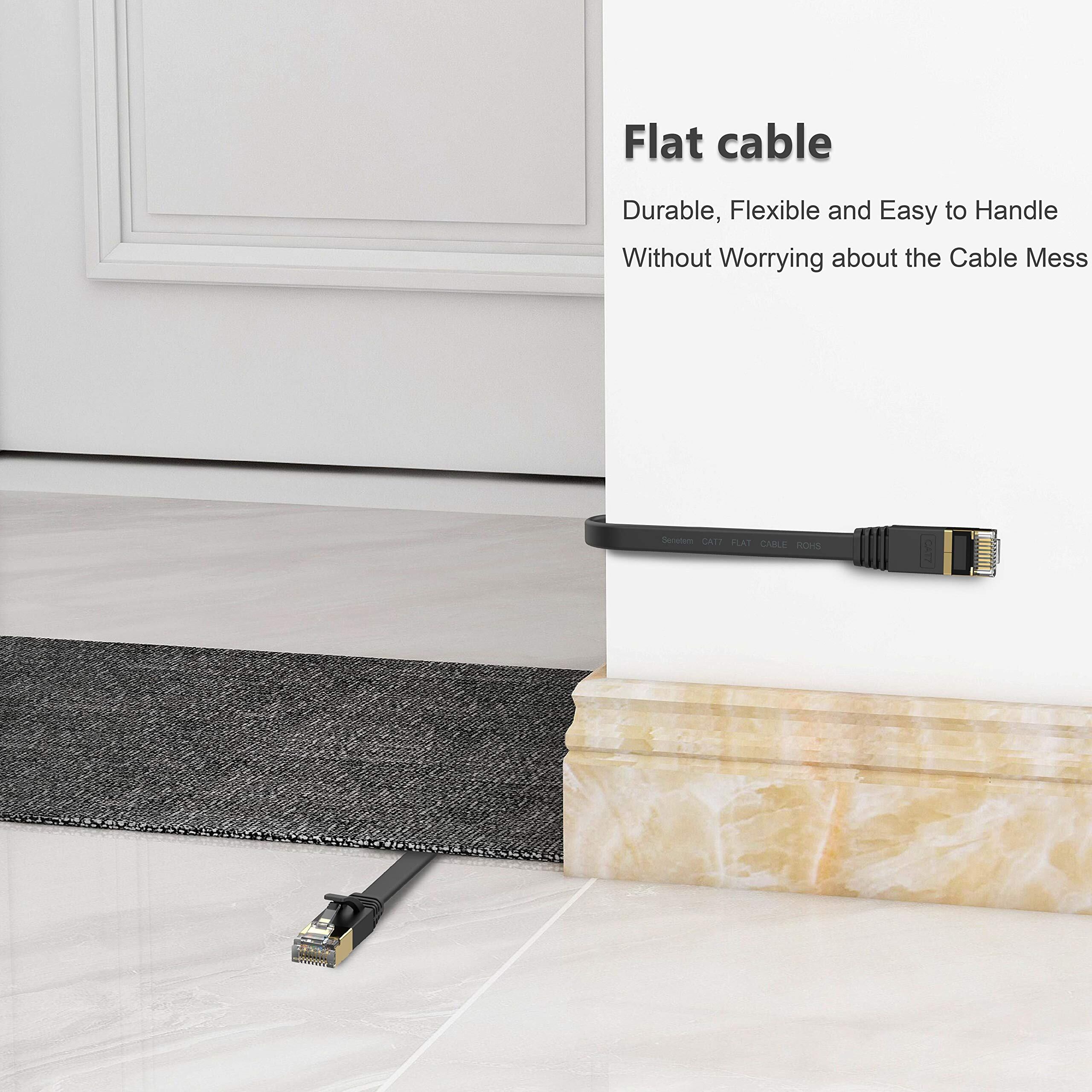 Senetem LANケーブル 5m ウルトラフラット カテゴリ7 高速 10Gbps/600MHz CAT7準拠 イーサネット RJ45 ツメ折れ防止 やわらか スリム ブラック モデム ルータ PS3 PS4 PS5 Xbox等に対応