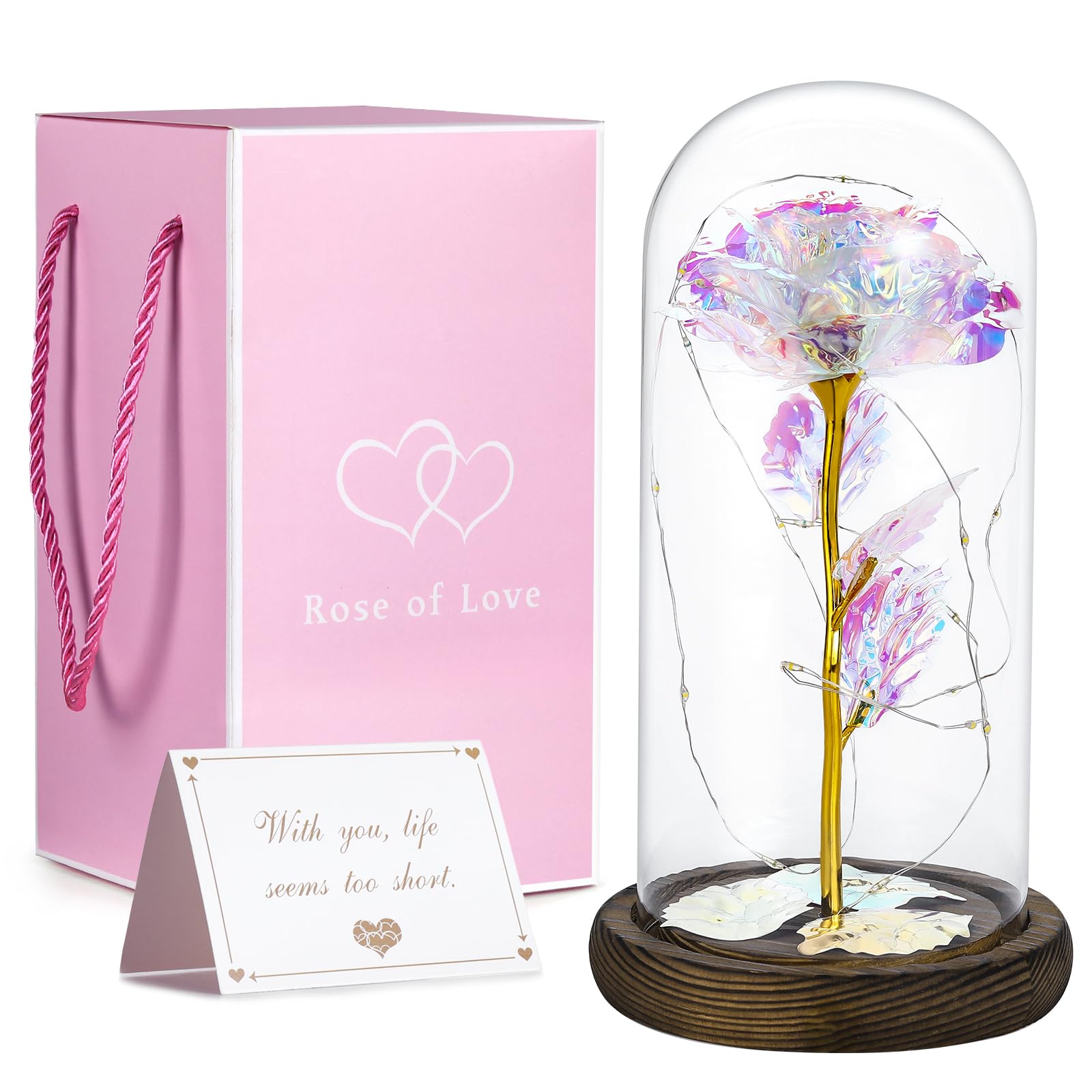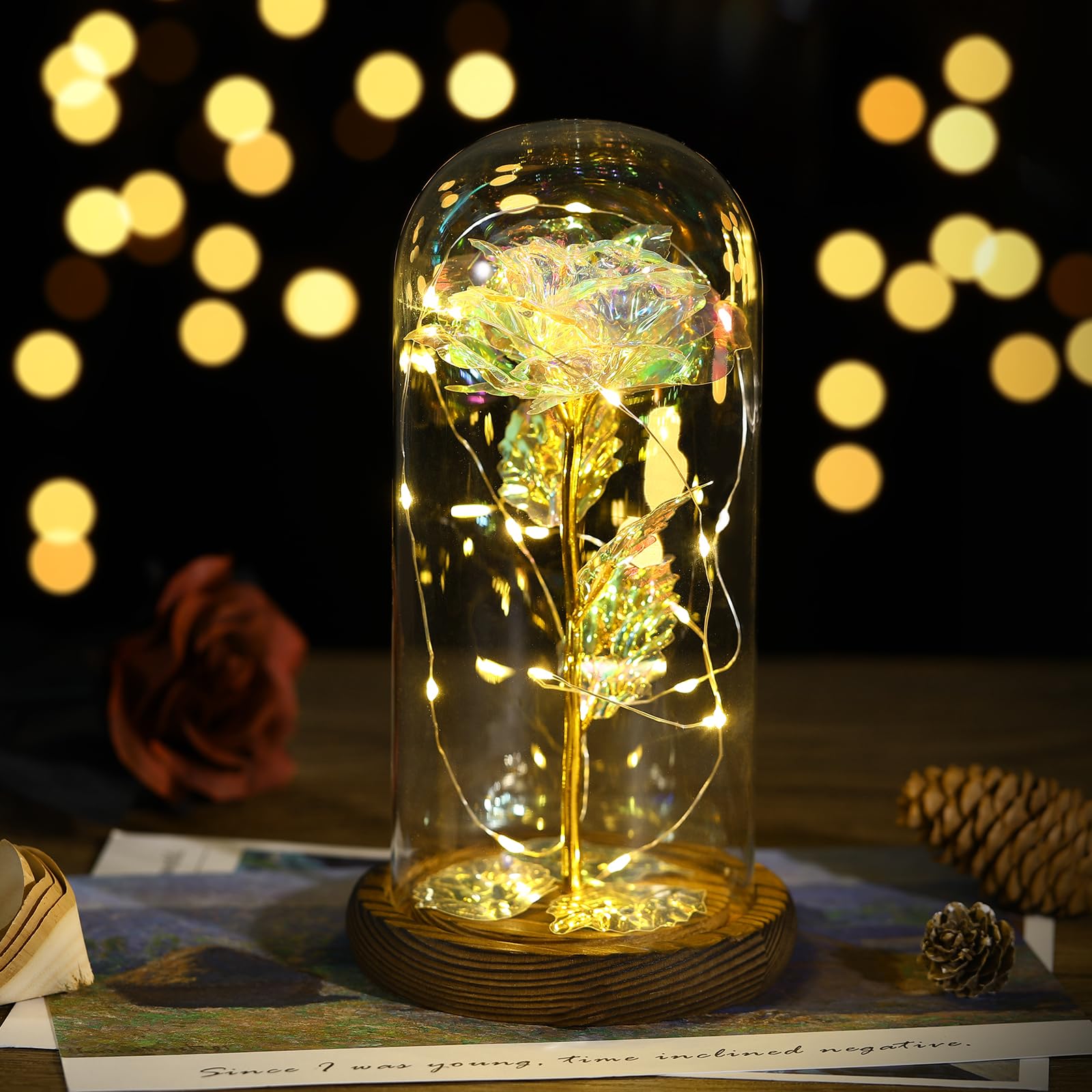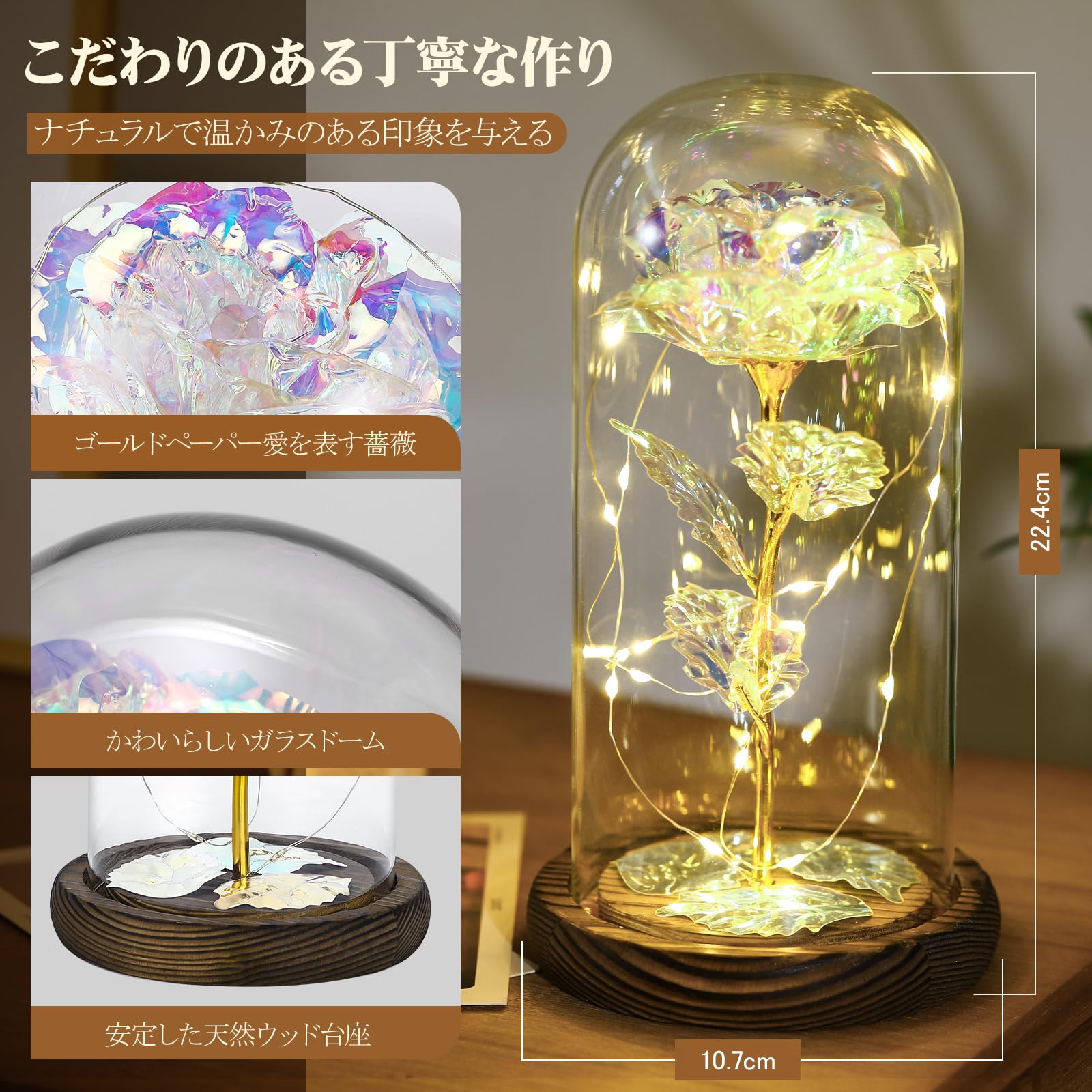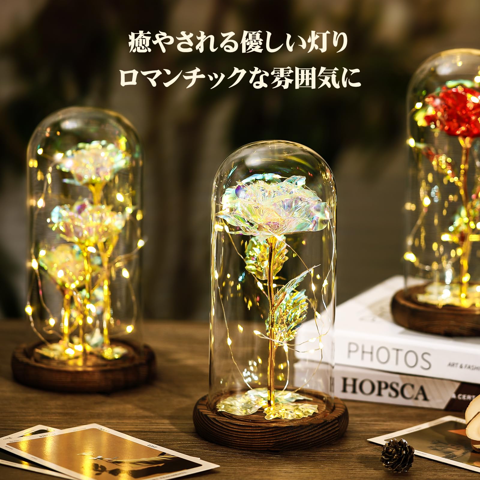 造花 ガラスドーム Lewondr 枯れない花 バレンタイン プレゼント 母 プレゼント メッキローズ バレンタイン 飾り 長持ち LEDライト付き 部屋飾り インテリア 引越しバラ/母の日/記念日/誕生日/入学/卒業/お祝い/お見舞い/お礼 女性 プレゼント クリスマス 飾りライト ボックス付き 幻白