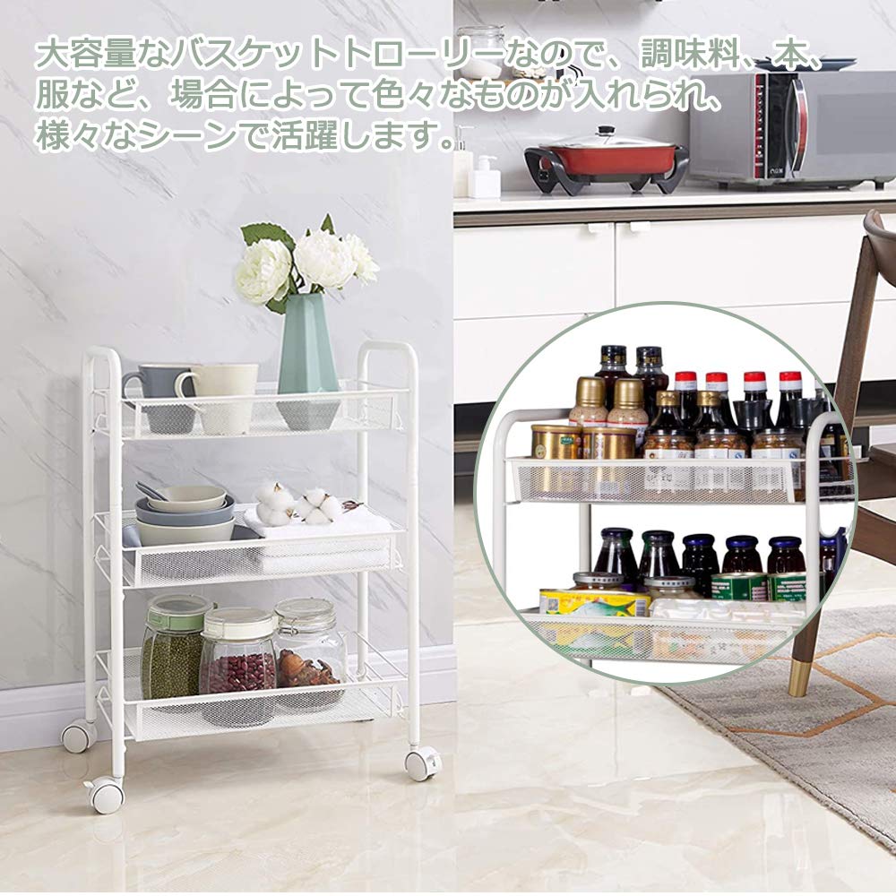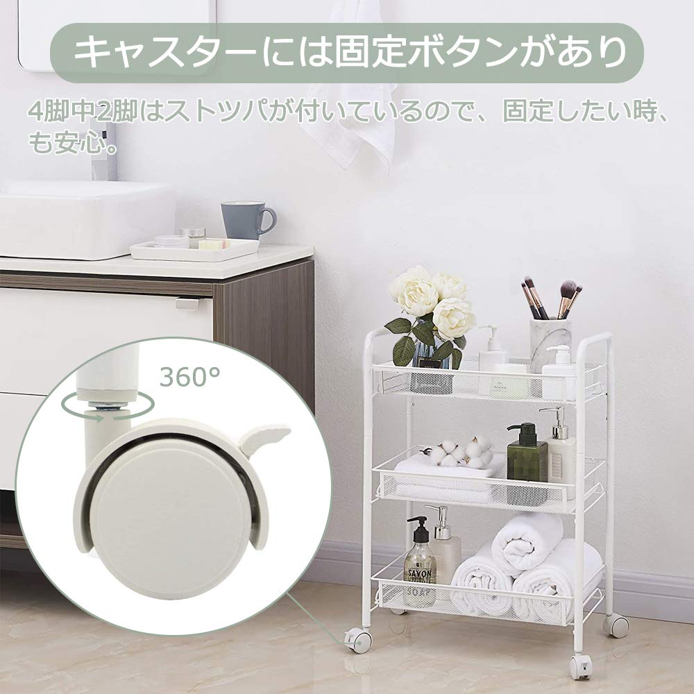 【簡単収納】書類や小物はもちろん、食材のストックなど、キッチン整理用のワゴン収納もできますし、どこでも手に入れる可能です。スチール製なので、水周りでも安心です。