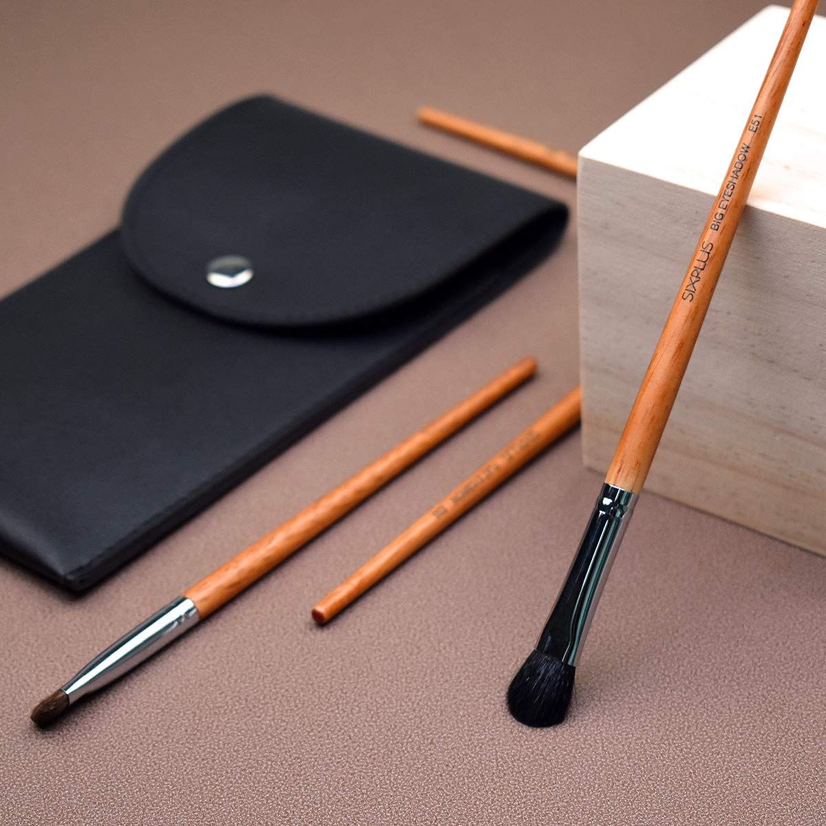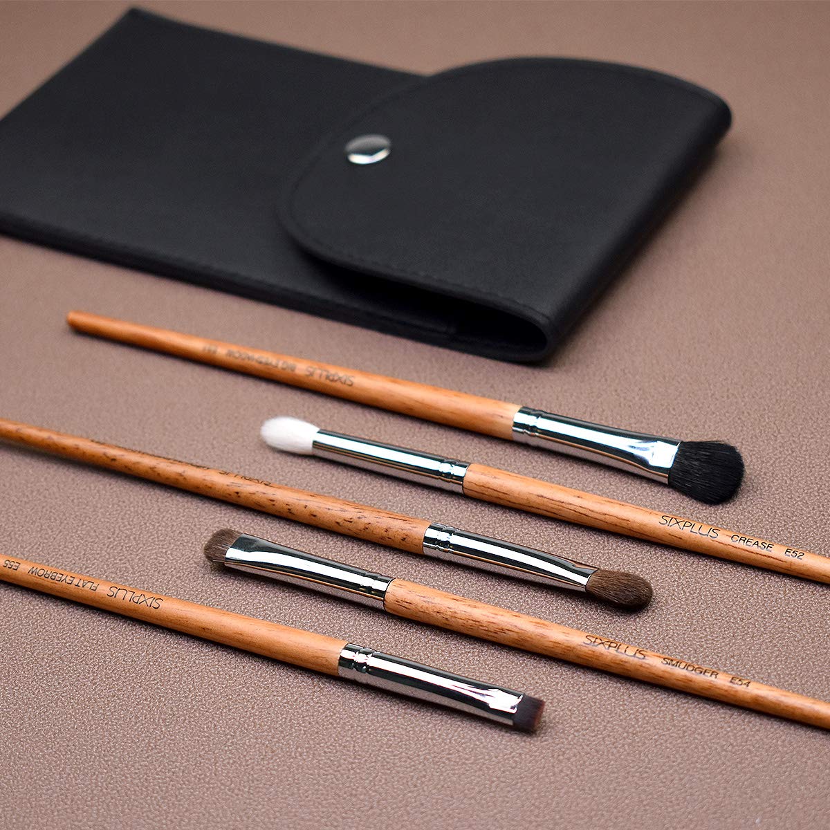 SIXPLUS オーバルブラシ ナイロン 高級動物毛 アイメイクブラシ 5本セット 化粧ポーチ付き プレゼント