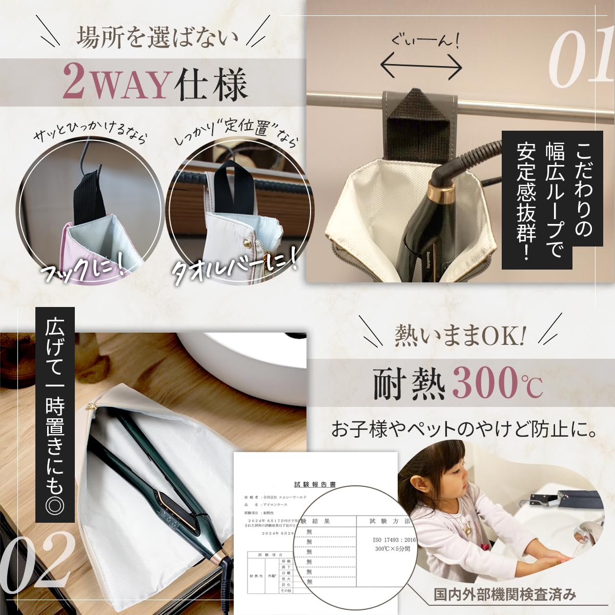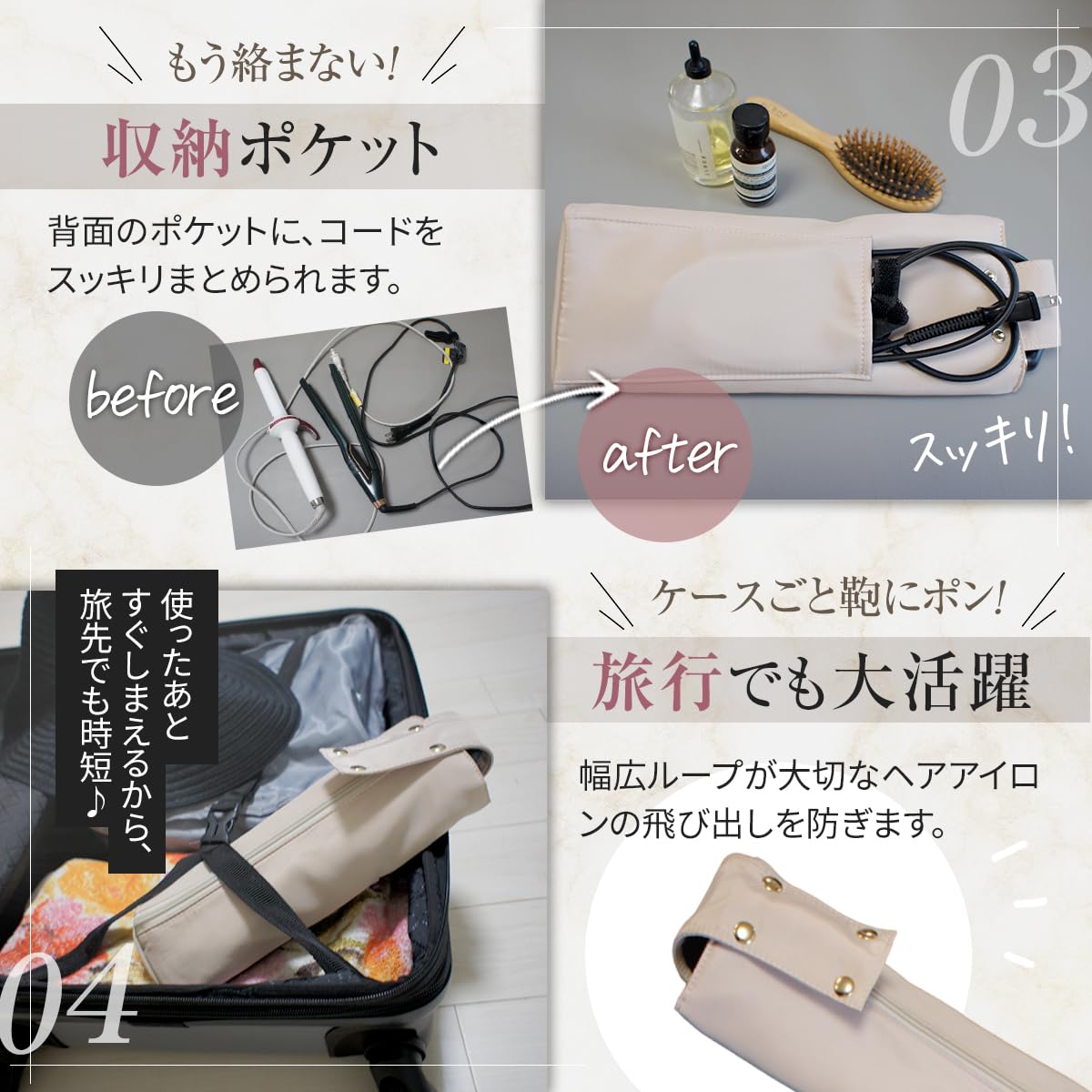 ヘアアイロン ケース 耐熱 300℃ 【検査済】 旅行 吊り下げ アイロンケース (ベージュ)