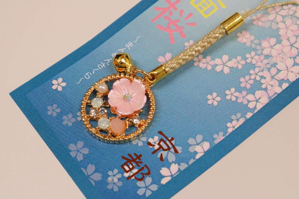 日本製 根付 0.5×2×10cm 満面 丸 桜 原産国:日本 キラキラストラップ お家のカギやお財布につけるのにぴったり ちょっとしたプレゼントに