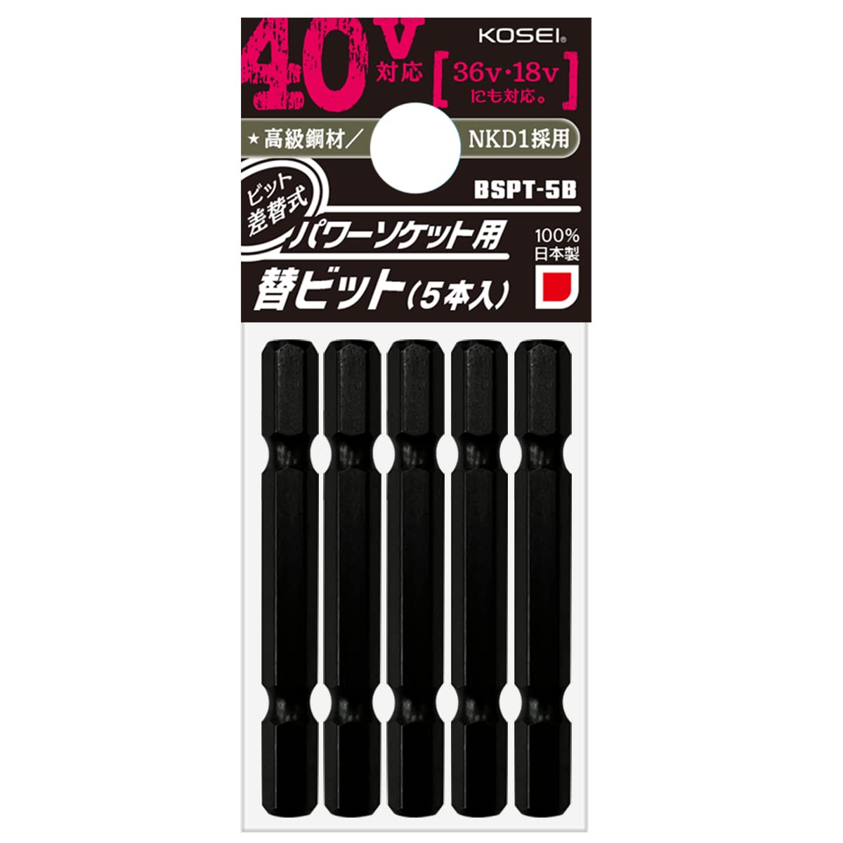 ベストツール KOSEI 40V対応 ビット差替式パワーソケット用替ビット 5本入 差込角6.35mm 両側フラット形状 高耐久鋼NKD-1仕様 18V対応 36V対応 日本製 BSPT-5B コーセイ