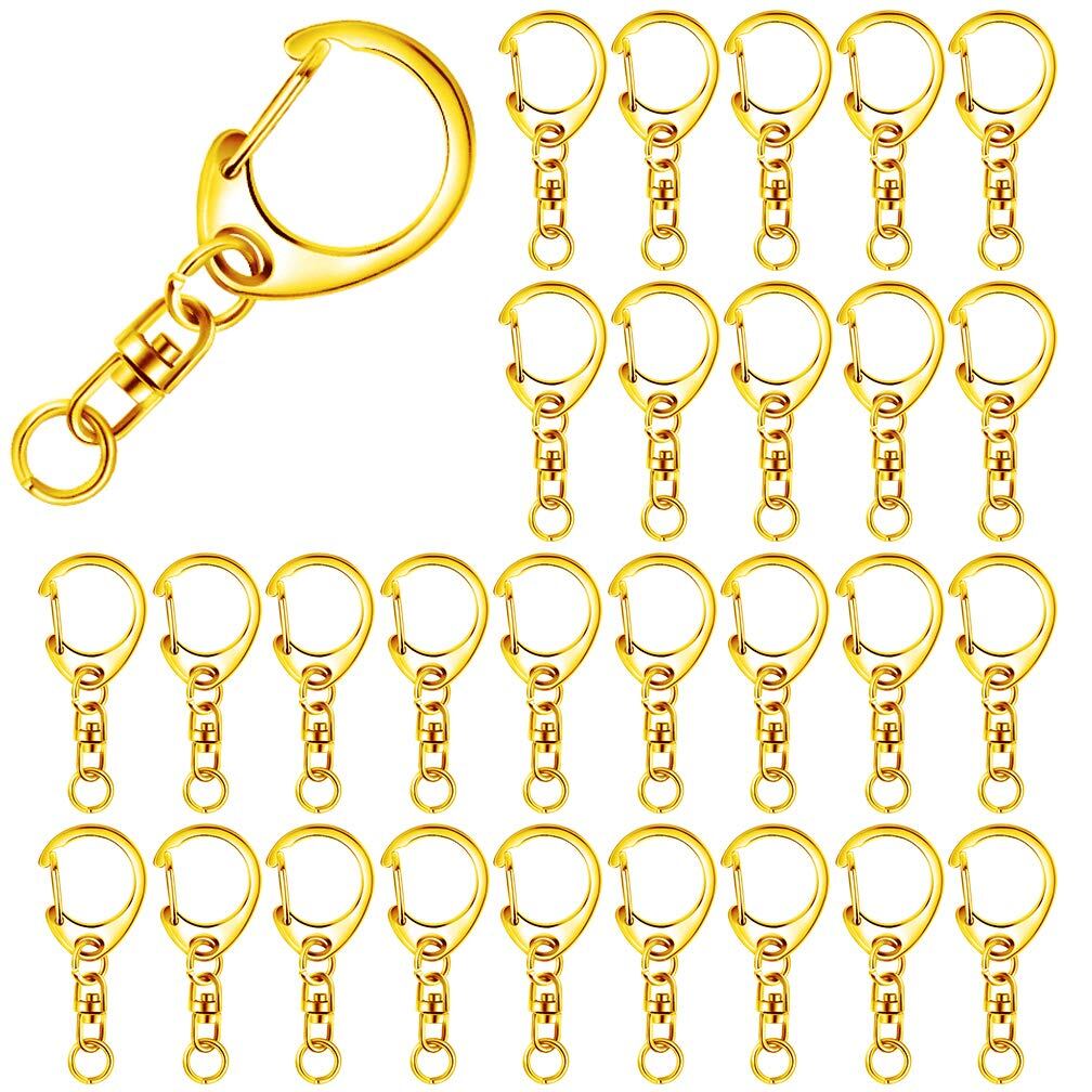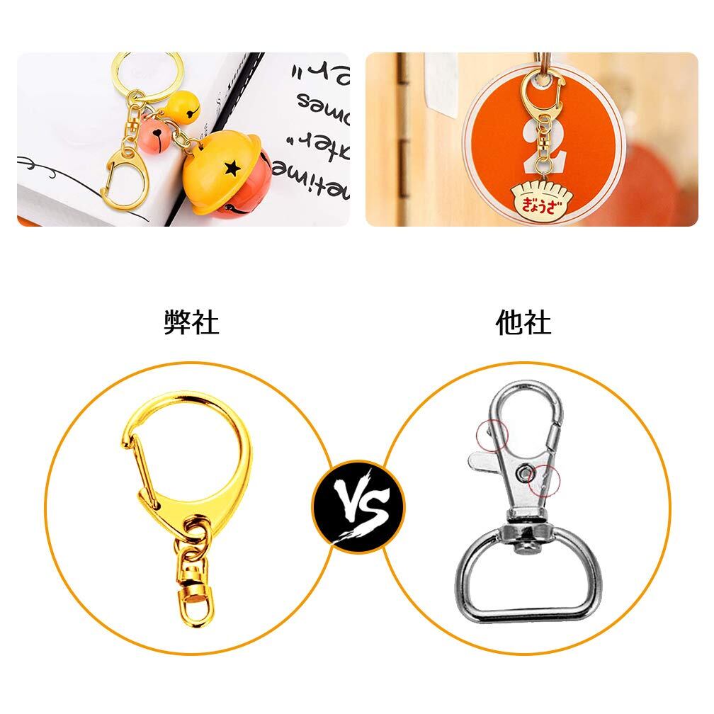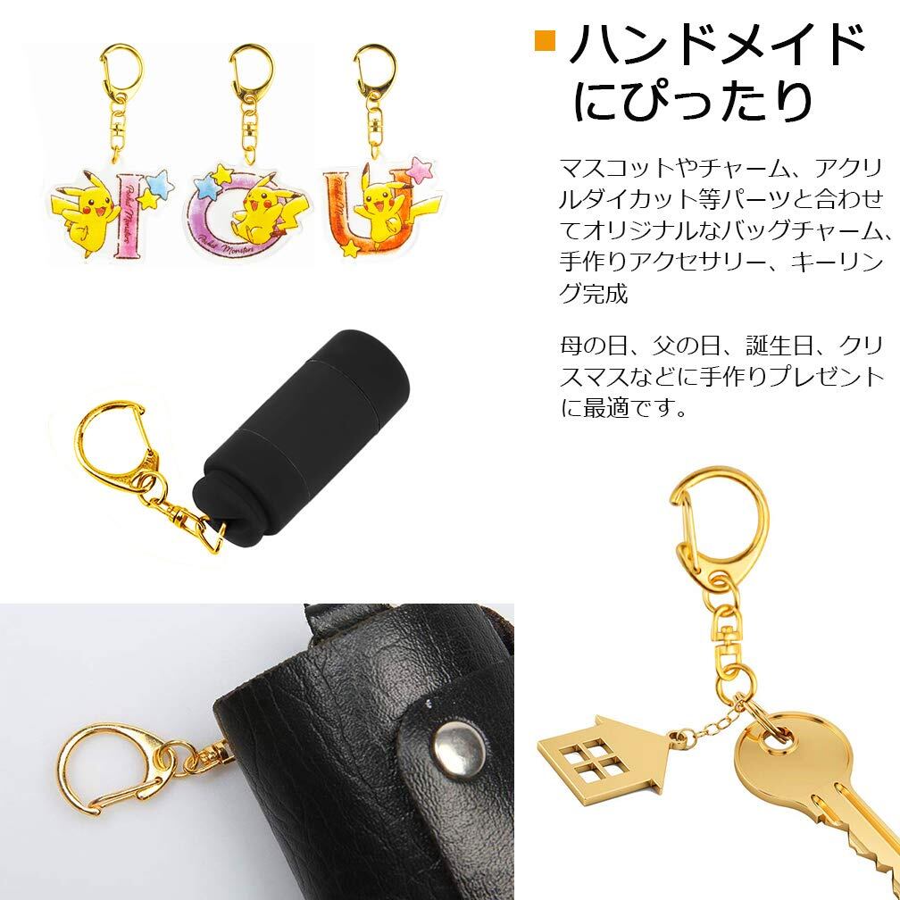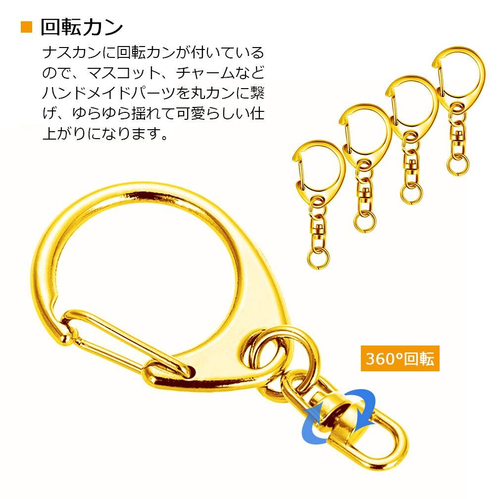 キーホルダー金具 50個入り キーホルダー パーツ キーリング リング チャーム ストラップ ナスカン 回転フック 丸カン 付き ワンタッチ 手芸用品 ハンドメイド アクセサリー 手作り 素材 DIY 副資材 全長49mm ゴールド