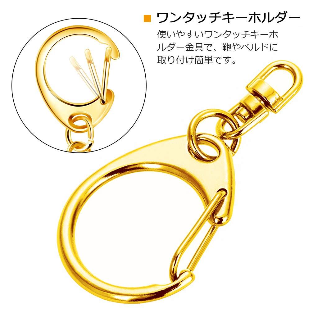『使いやすい』ワンタッチ式なので簡単にバッグやベルトに取り付けます、回転カン付きのため、裏表を気にせず付けることができ、ねじれずにとても使いやすいです。とっても便利な鍵用金具セットです。
