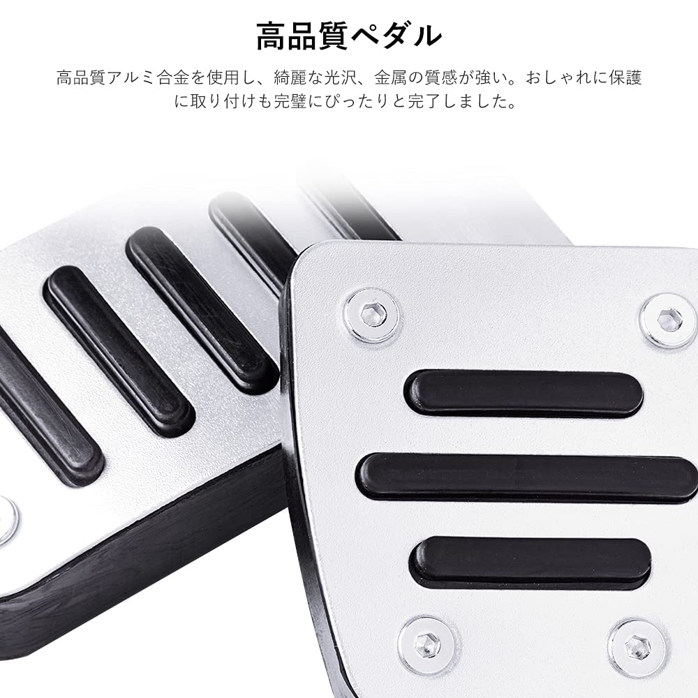 【ドレスアップ】足もとに高級感、チープ感が無く、ドレスアップ効果に良いペダルです。本格派のアルミペダルの光沢がスポーティな足元を演出します。上質感を漂い、高級感を演出し、車内雰囲気を変え、スタイリッシュでスポーティーな空間に演出できます。