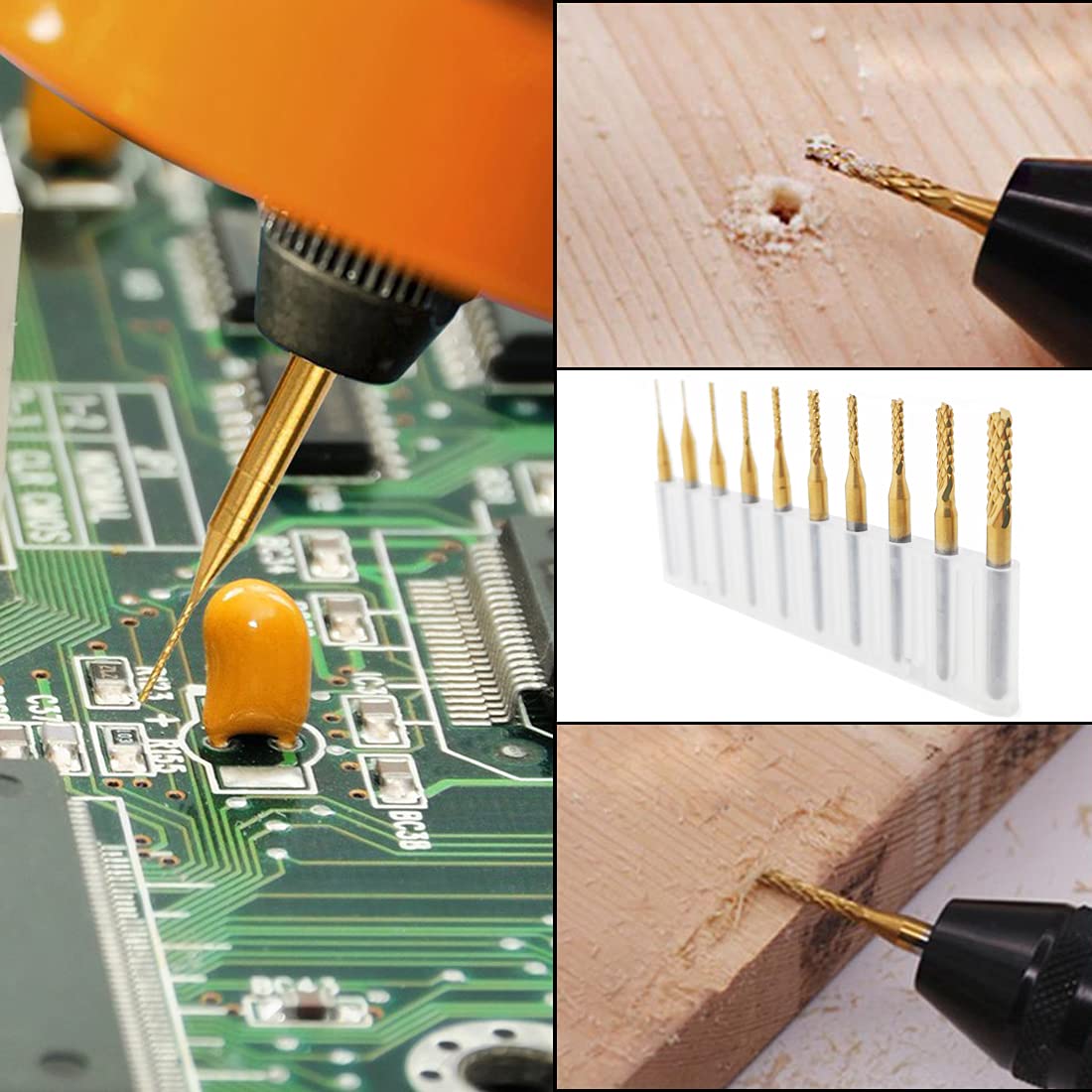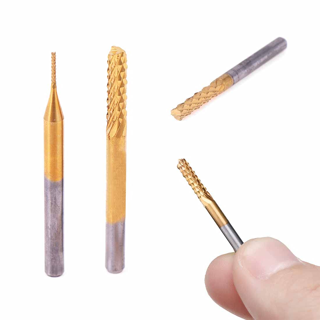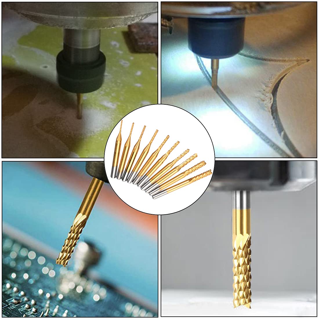 10ピース エンドミル CNC フライスカッター 0.8-3.175 mm チタン・コート・カーバイド 精密ビット ロータリーバーセット 彫刻ビット タングステンバー高速度 工具 切削 研磨用