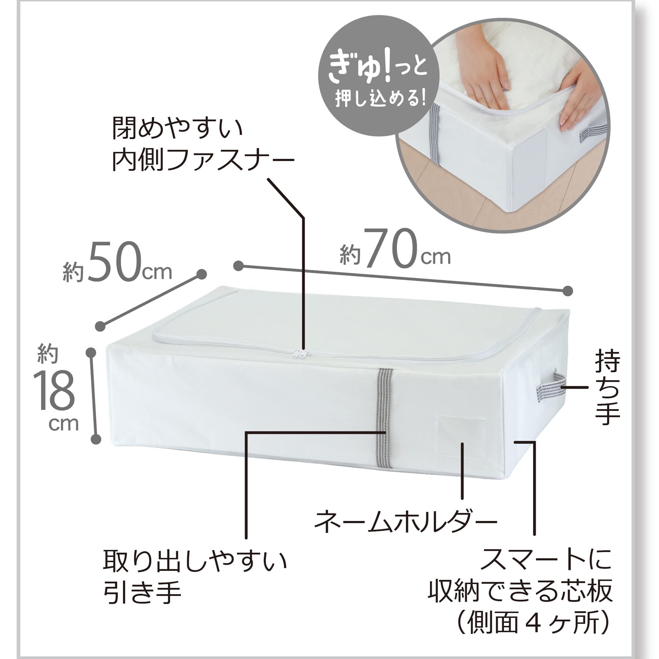 ●収納しているものが一目でわかるネームホルダー付きなので、布団の交換時期に助かります。