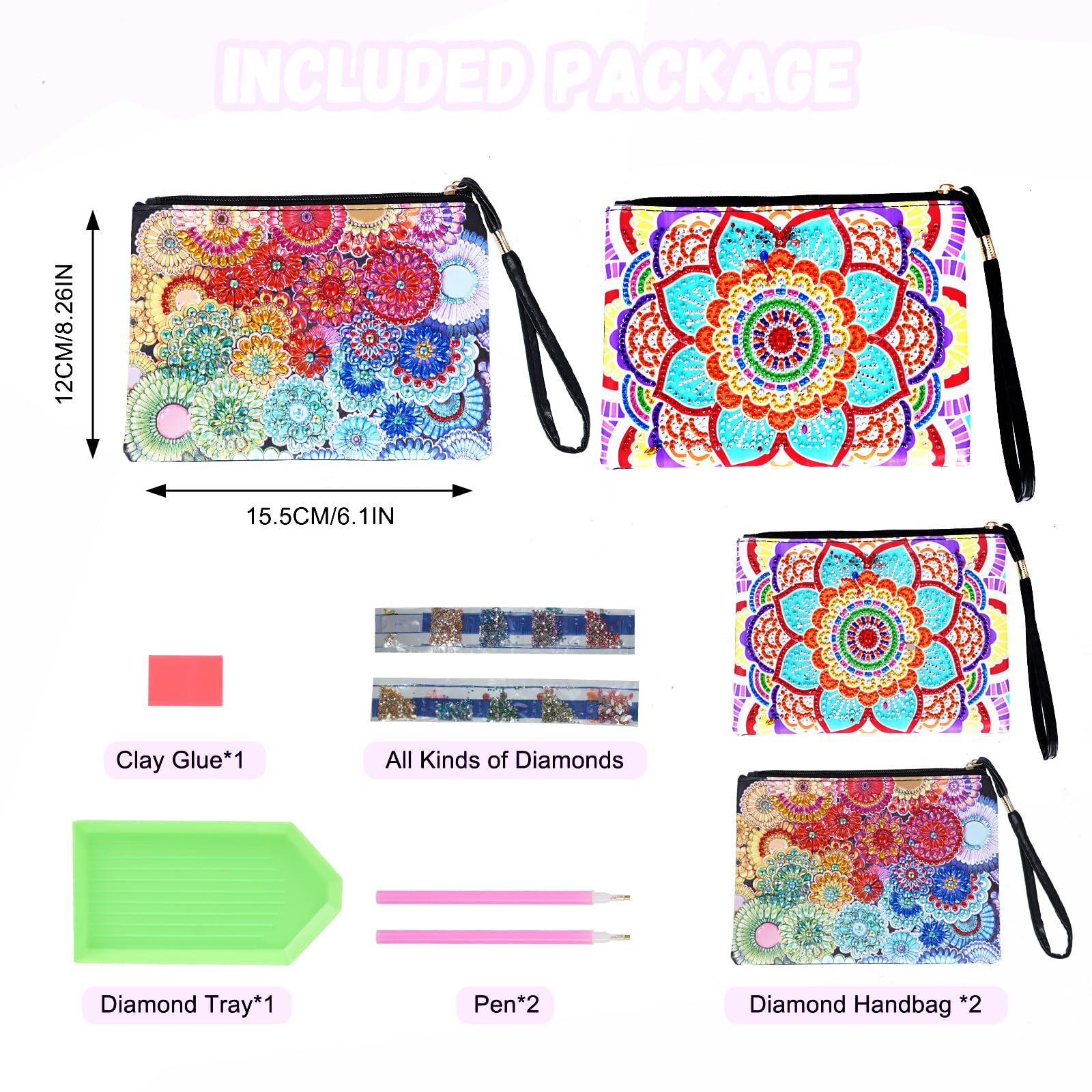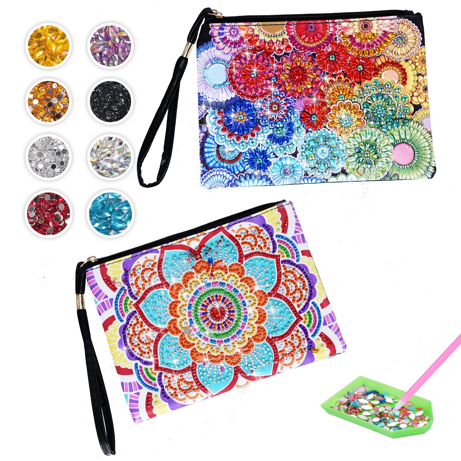 2枚セット ダイヤモンドアート 手作り DIYバッグ 財布 5D 女の子向け ダイヤモンドペイント 特殊ビーズ 花柄 手芸用トートオシャレ 誕生日 クリスマス プレゼント イースター ギフト 手作りおもちゃ