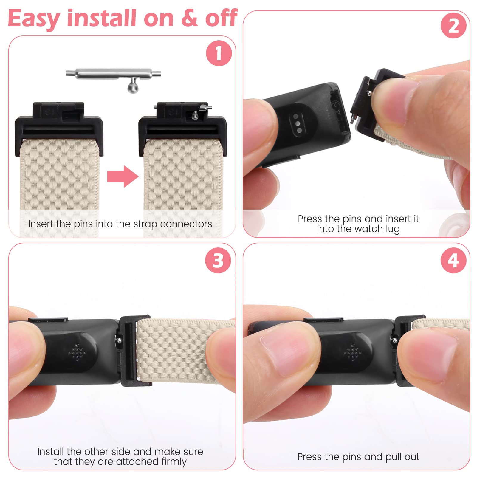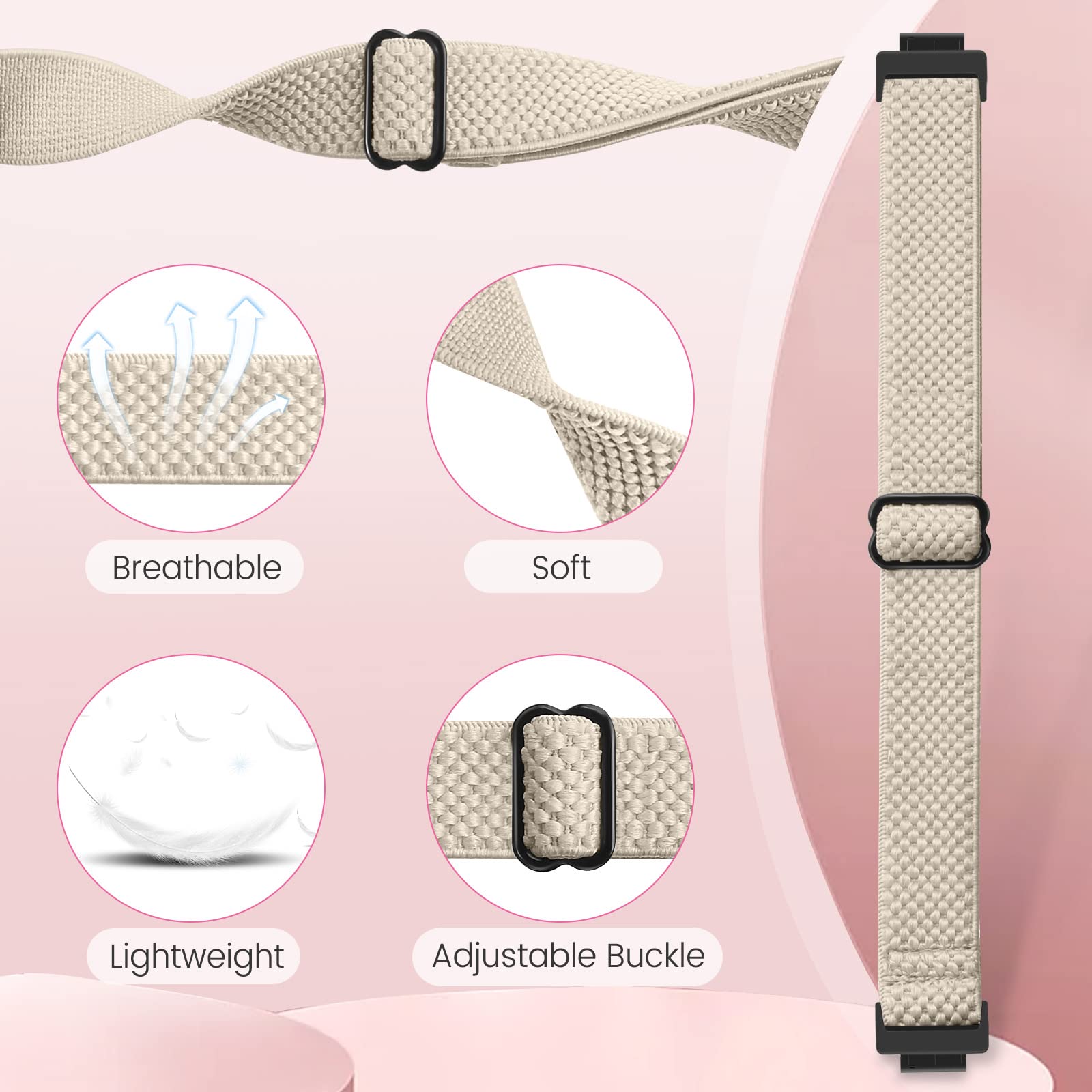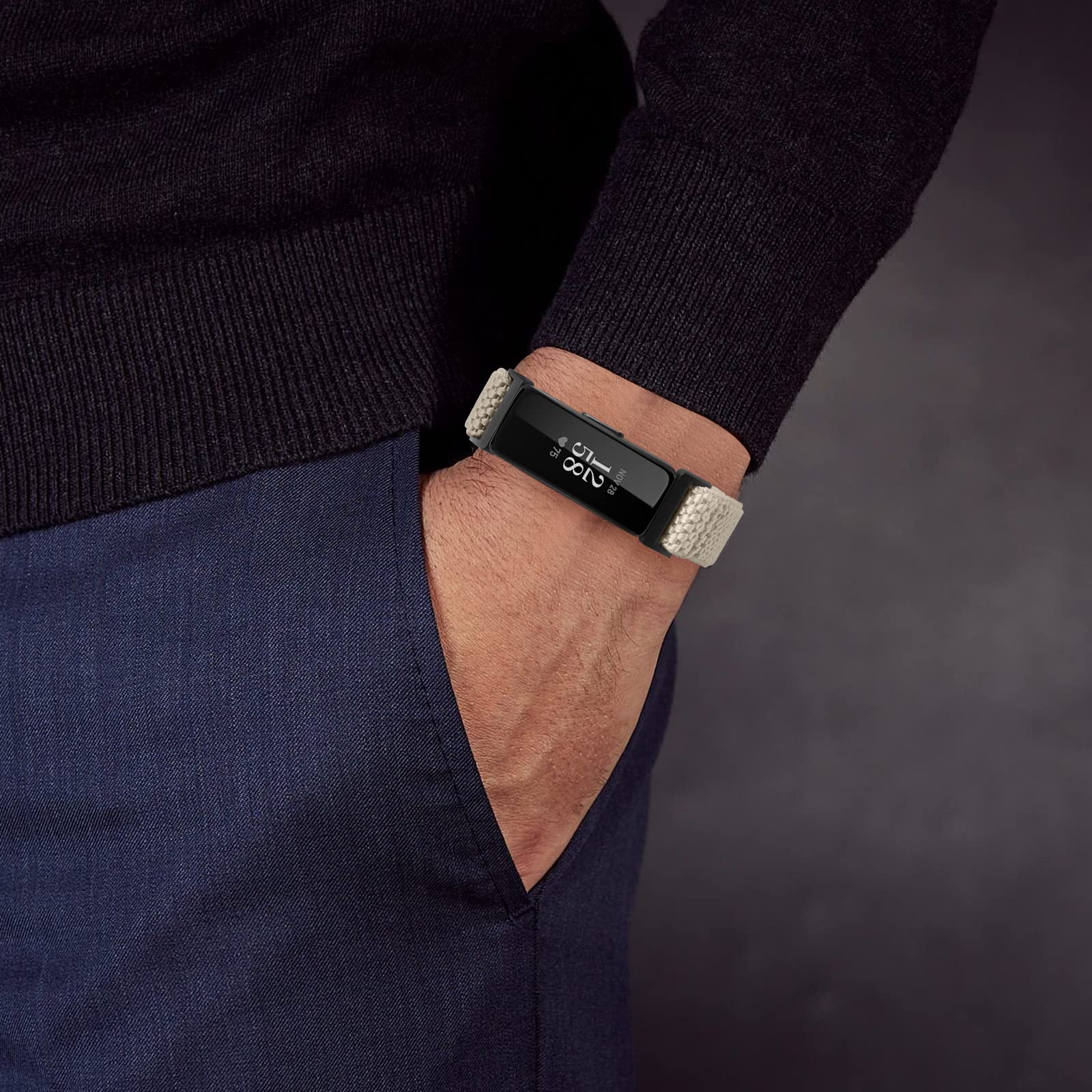 【調整しやすい】---ナイロンの弾性付きFitbit Inspire バンドは「8」模様のリング調整器が付いています。あなたに適切な腕サイズに調整しやすくて、あなたの運動やレジャー活動の時に気軽に付けます。手を絞ったり緩すぎたりすることがありません。