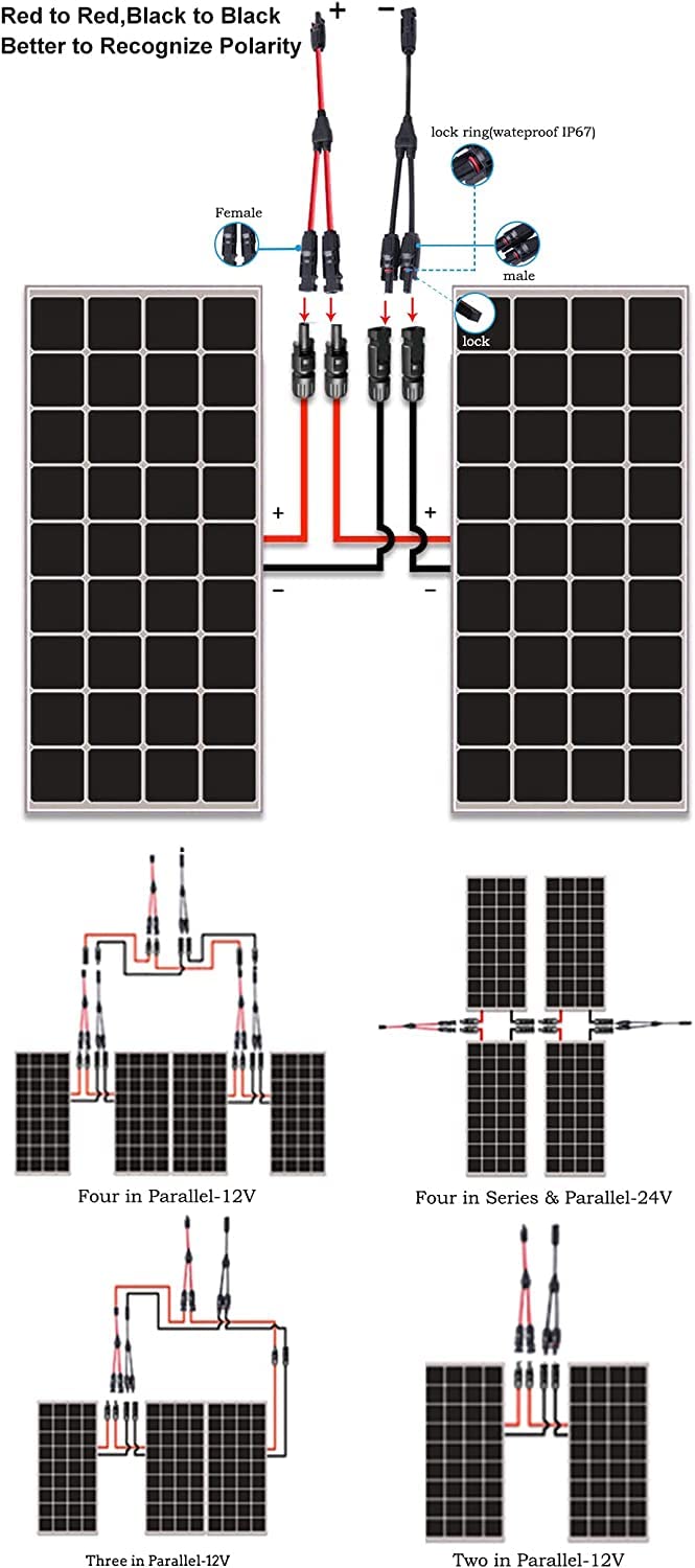 ★ ペアのMC4分岐コネクタ:ソーラーパネル用の素早く簡単な並列配線ソリューションを提供。