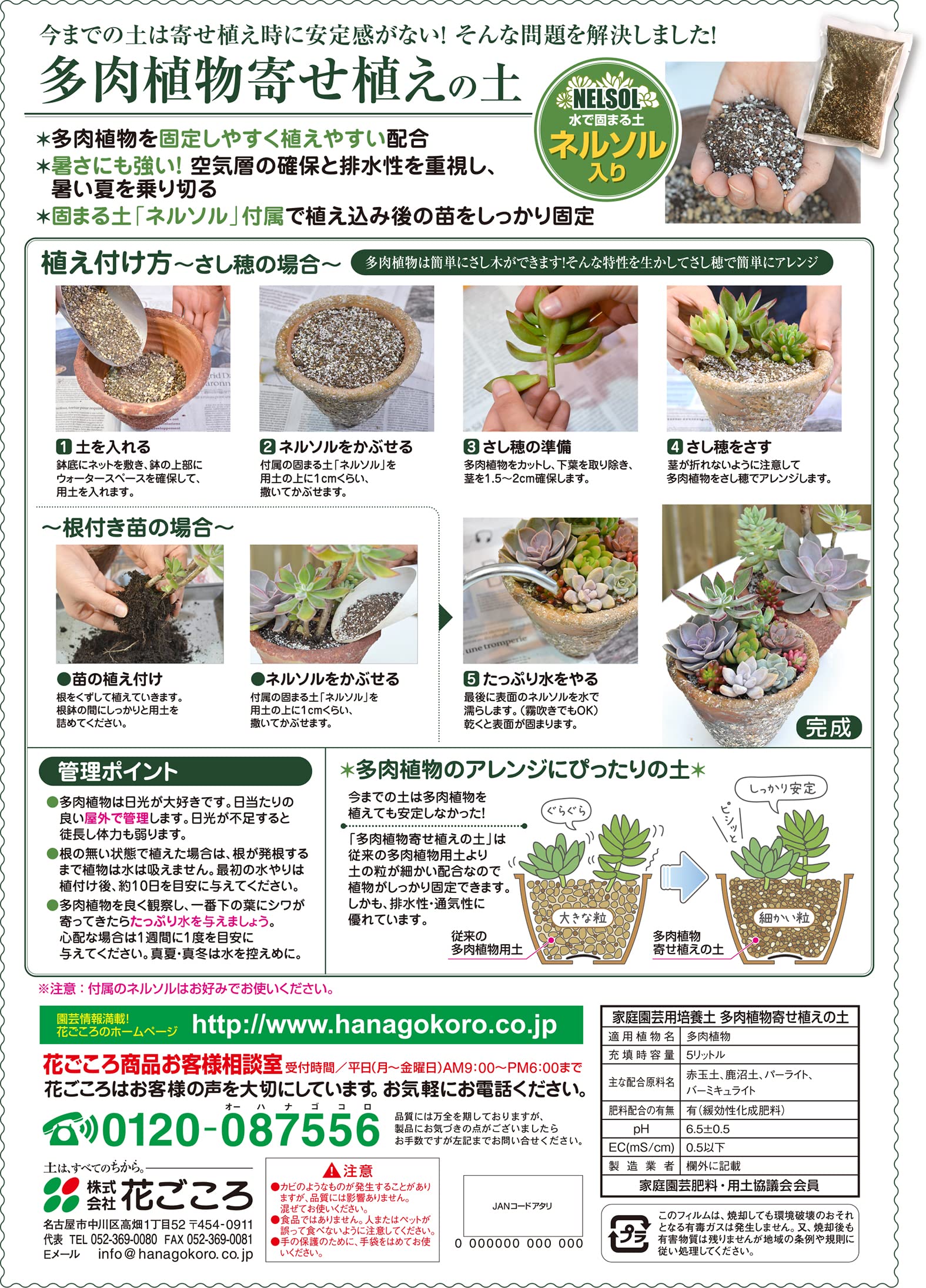 花ごころ 多肉植物寄せ植えの土【ネルソル付】 5L×2袋 容量:5L×2袋 製造:日本 適用:多肉植物、ミニ観葉など 主原料:赤玉土、鹿沼土、パーライト、バーミキュライト 固まる土「ネルソル」付きだから、植え込み後の苗をしっかり固定
