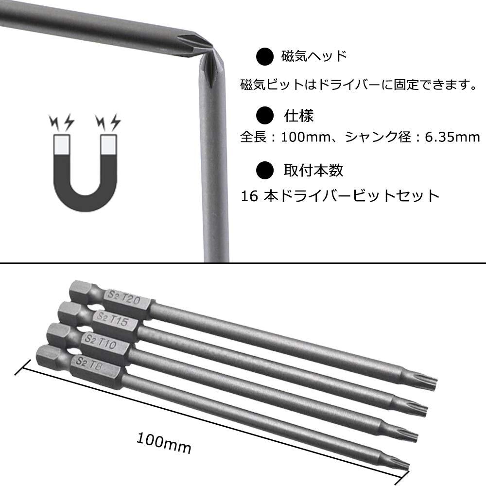 【努力特価】Bestgle6.35 ビットドライバービット 片頭ビット16本組 六角ビット100mm 精密ビット六角ビット マイナスビット 十字軸 六角ビットドライバーセット中空トルクス頭 磁気クロスヘッドドライバービットドリルビット工具 磁気六角ビットセット 電動ドライバービット