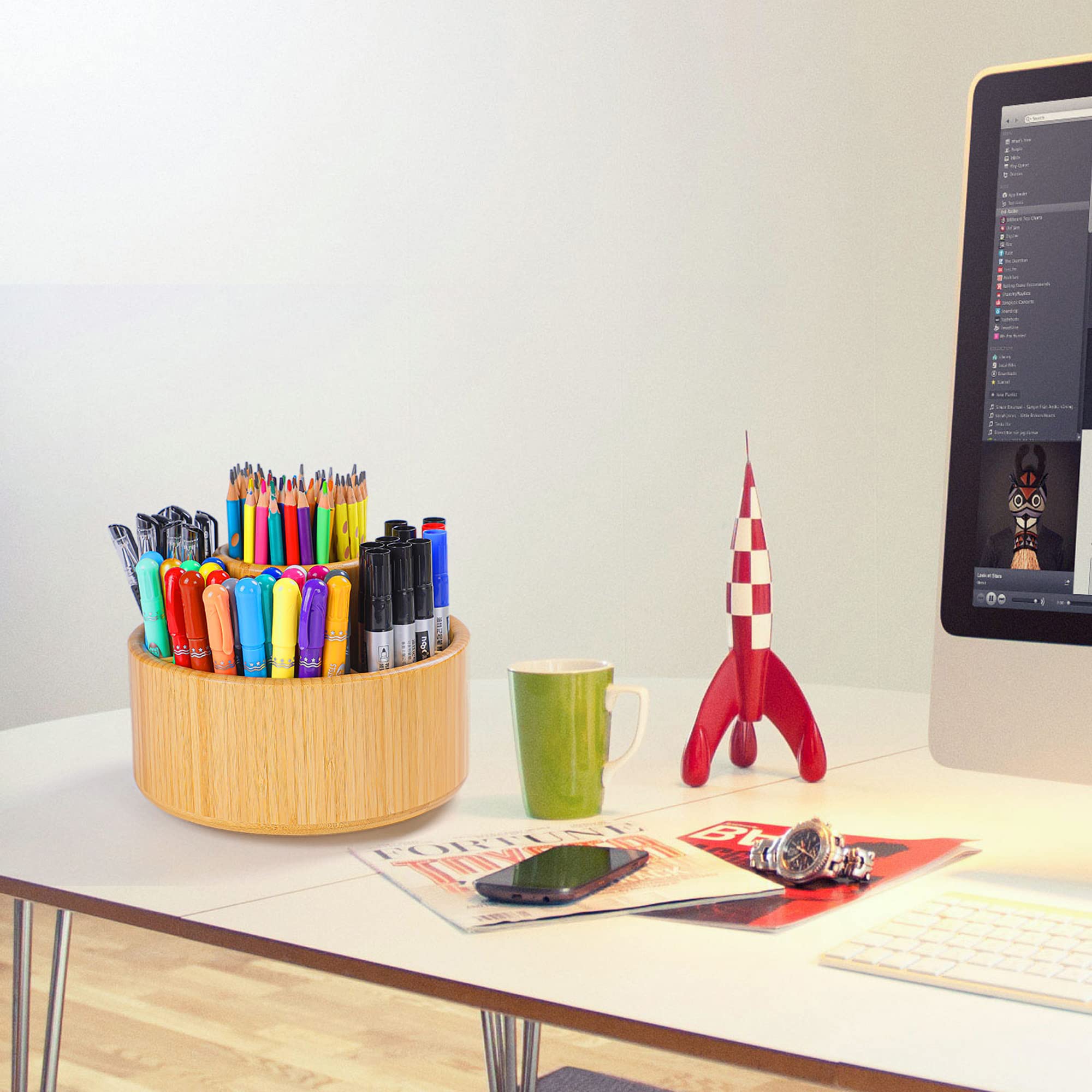 デザイン:特別なデザイン、ペン立ては平穏的に回転することが出来ます。使用したいものの方向を選べ、とても便利です。