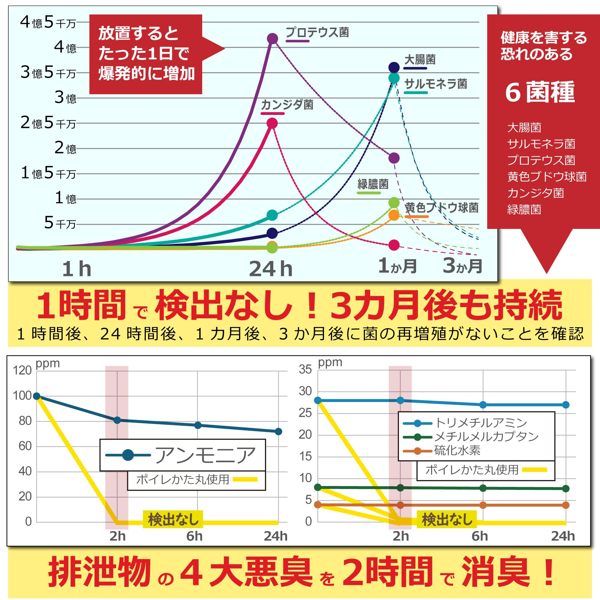 【 凝固剤について:15年保存・日本製 】「ポイレかた丸」は防災士監修のもと開発された日本製の抗菌性凝固剤です。 排泄物に対する除菌・抗菌作用と、アンモニア・メチルメルカプタンなどの悪臭を抑える消臭性能を備えています。 粉末をアルミパッケージで個別密封し、防湿・防水仕様(※水没しても中に水は入りません)。破損がなければ15年以上使用可能ですが、保管環境やパッケージ劣化を考慮し使用期限は15年(パッケージ裏面に記載)。 凝固力をしっかり維持しつつ、可能な限り消臭・抗菌性能を両立した設計です。 吸水スピードのみを優先せず、災害時に求められる「衛生リスクの抑制」を重視しています。 ※使用時に粉が舞うことがあります。顔を近づけすぎないようご注意ください。