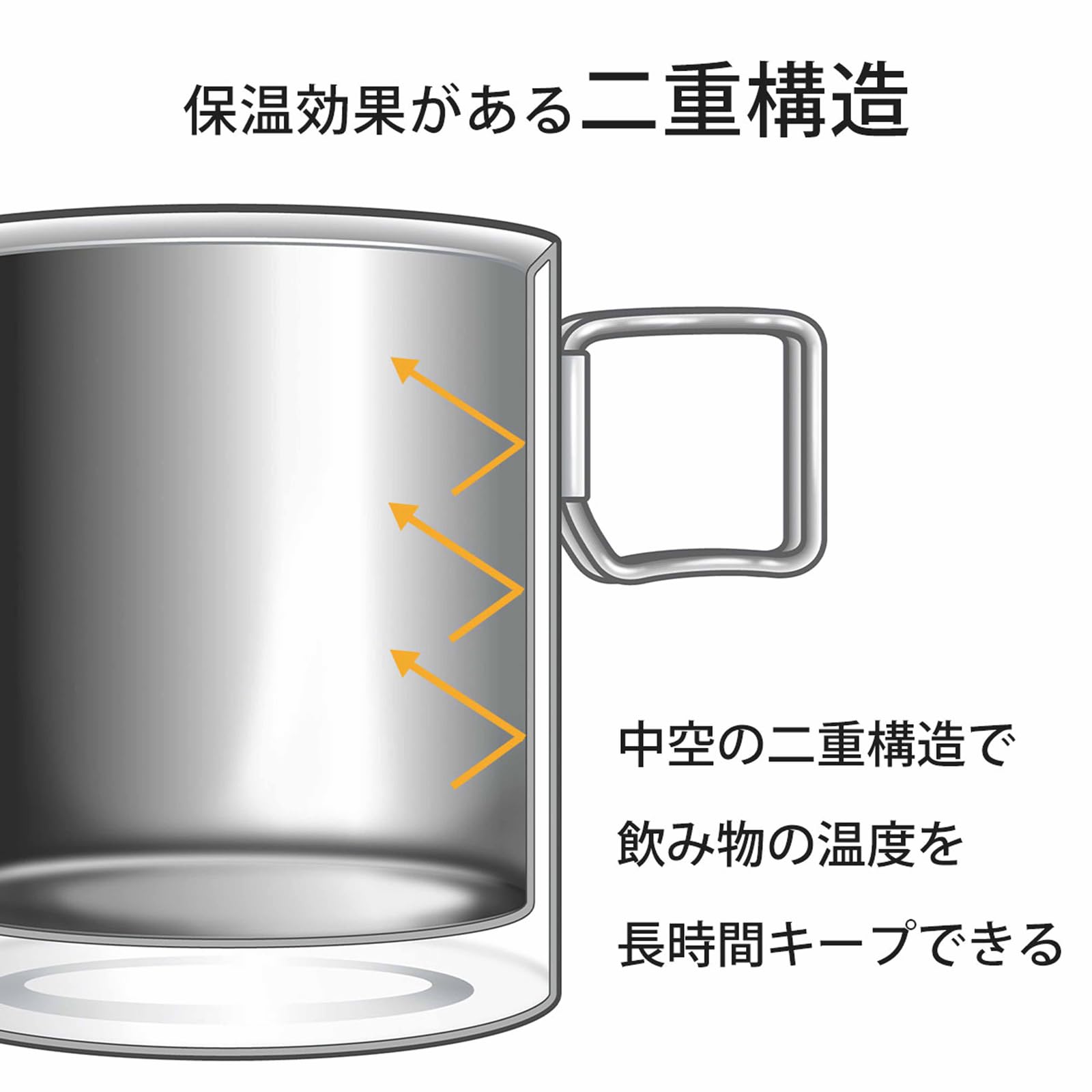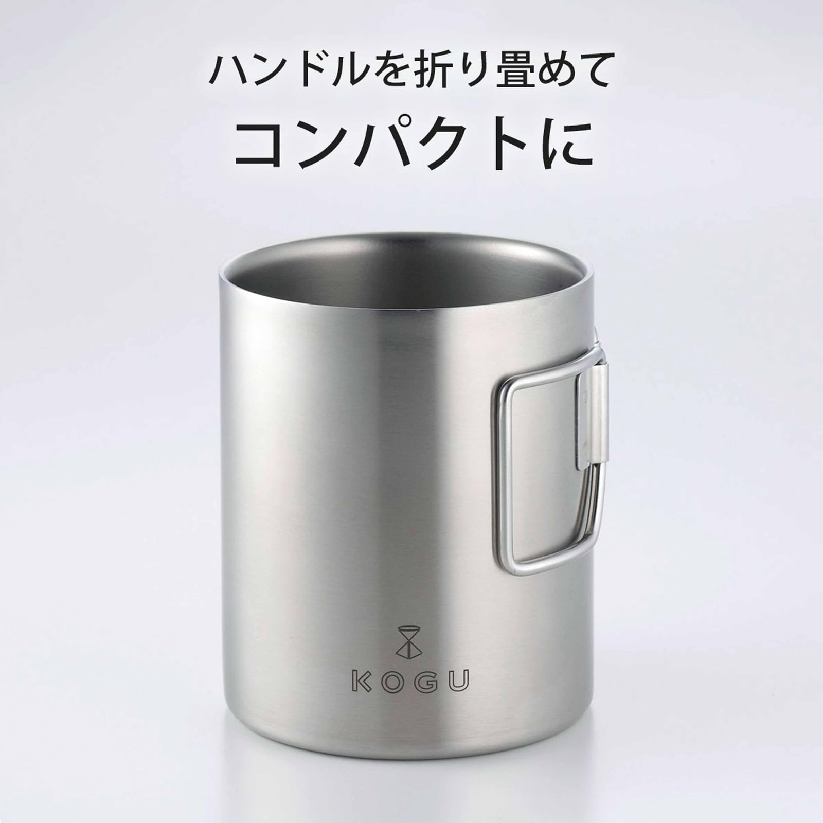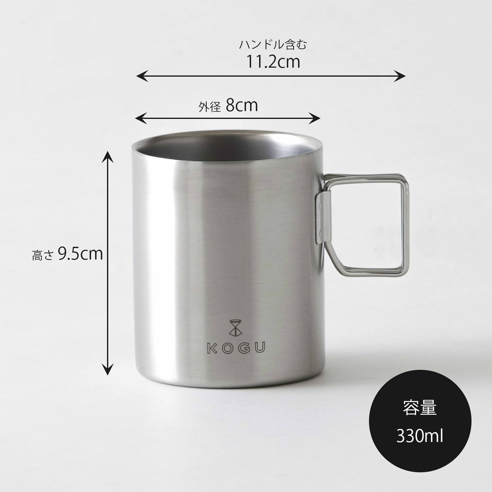 KOGU 珈琲考具 マグカップ 二重マグカップ 330ml 【日本製】 ステンレス 食洗機対応 折りたたみハンドル 中空二重構造 キャンプ アウトドア 燕三条 42165 プレゼント 誕生日 記念日 ギフト 贈り物 下村企販