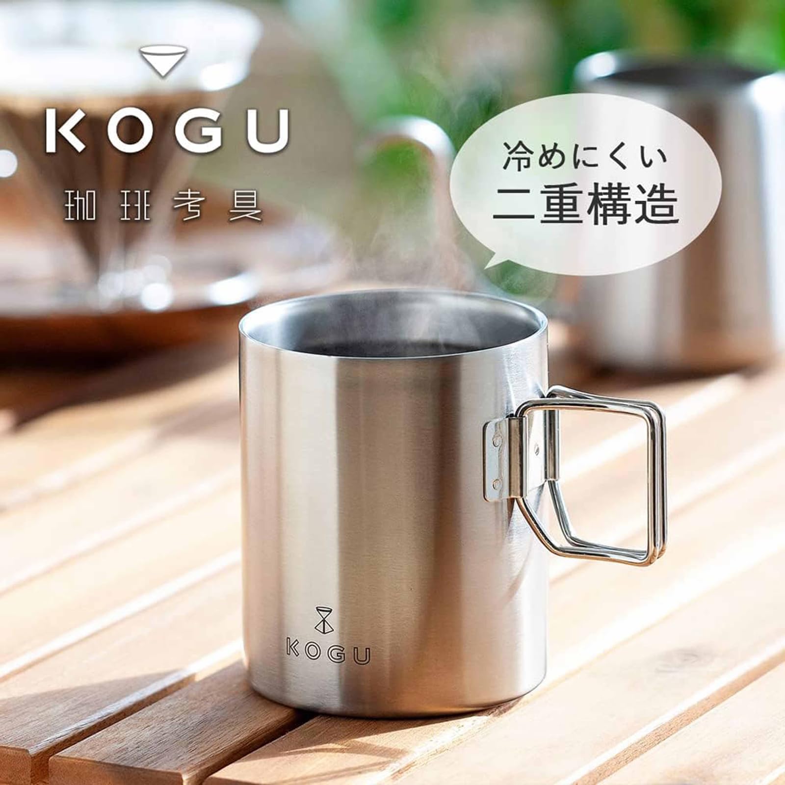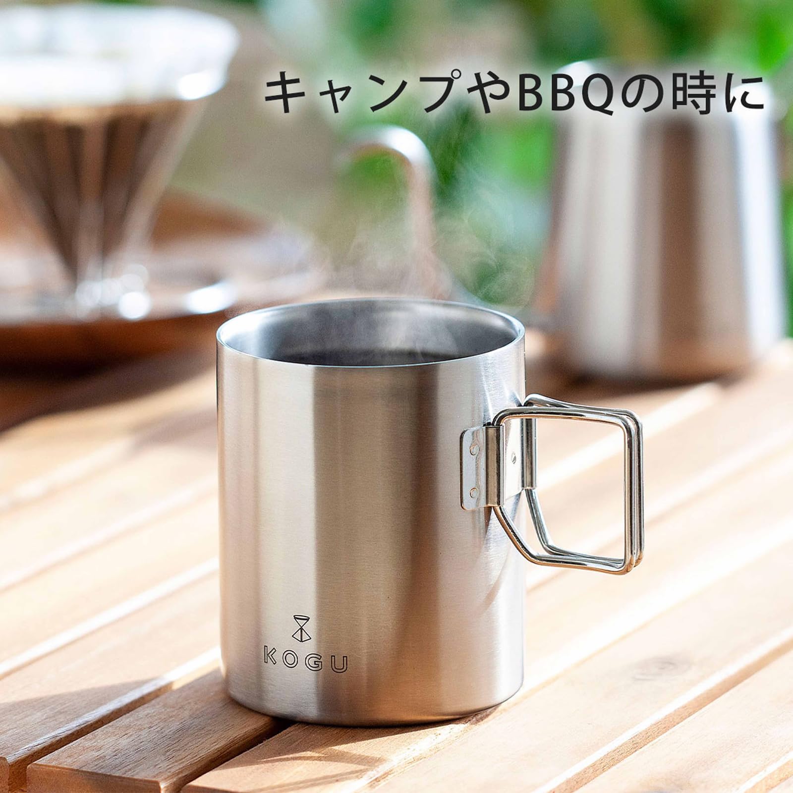 【在庫のみ】KOGU 珈琲考具 マグカップ 二重マグカップ 330ml 【日本製】 ステンレス 食洗機対応 折りたたみハンドル 中空二重構造 キャンプ アウトドア 燕三条 42165 プレゼント 誕生日 記念日 ギフト 贈り物 下村企販