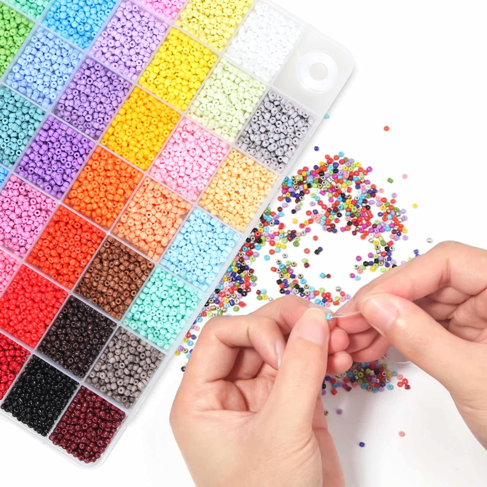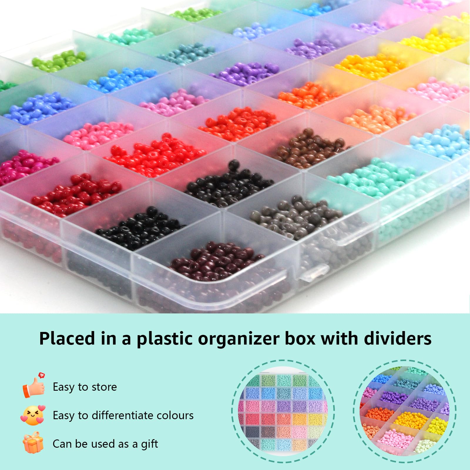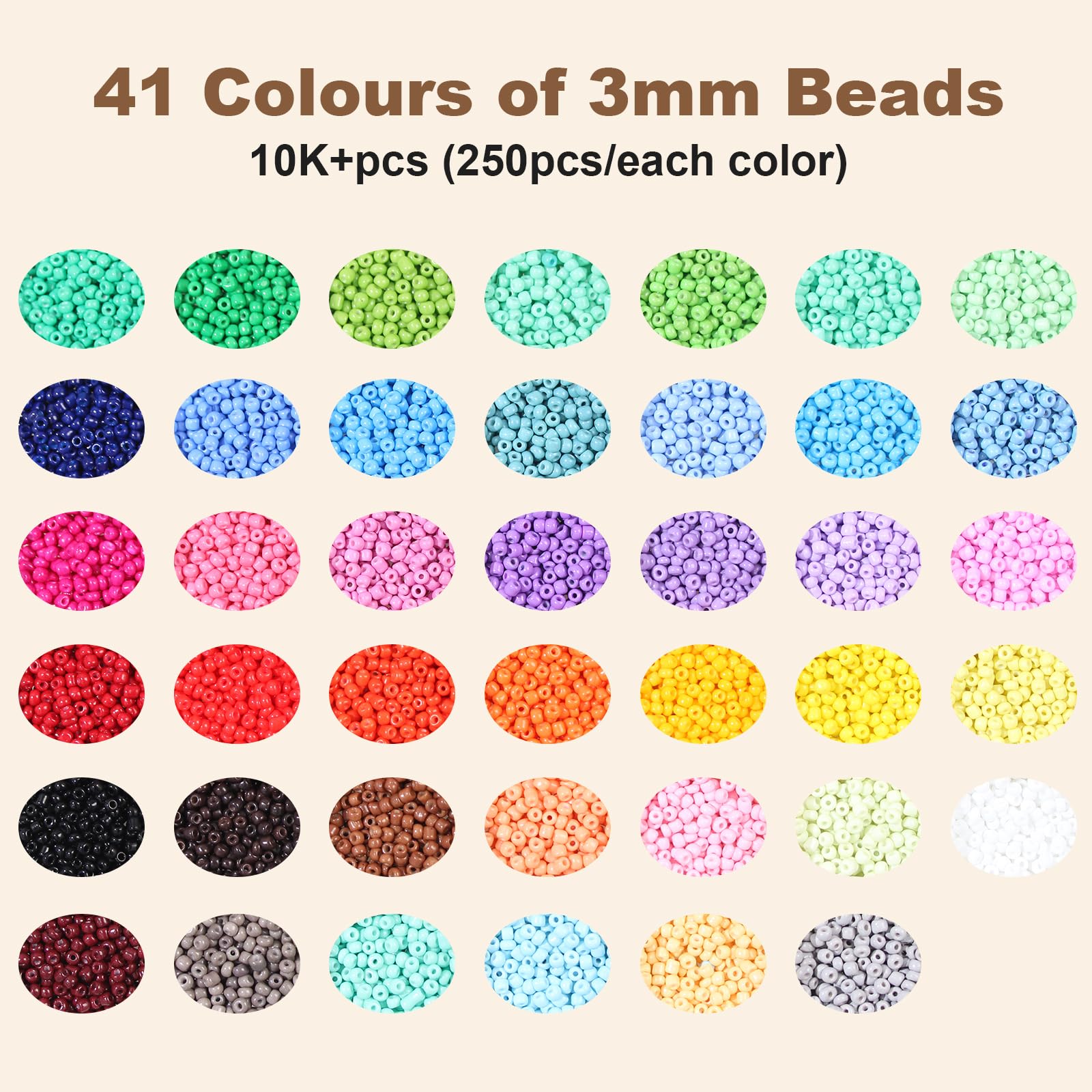 ?【ビーズサイズ】:直径約3mm;穴:約1mm;41色;約10250個/箱。ほとんどはクリームのような浅いカラーなので、見るだけで気持ちがよくなり、ビーズ手芸を存分に楽しんでください!