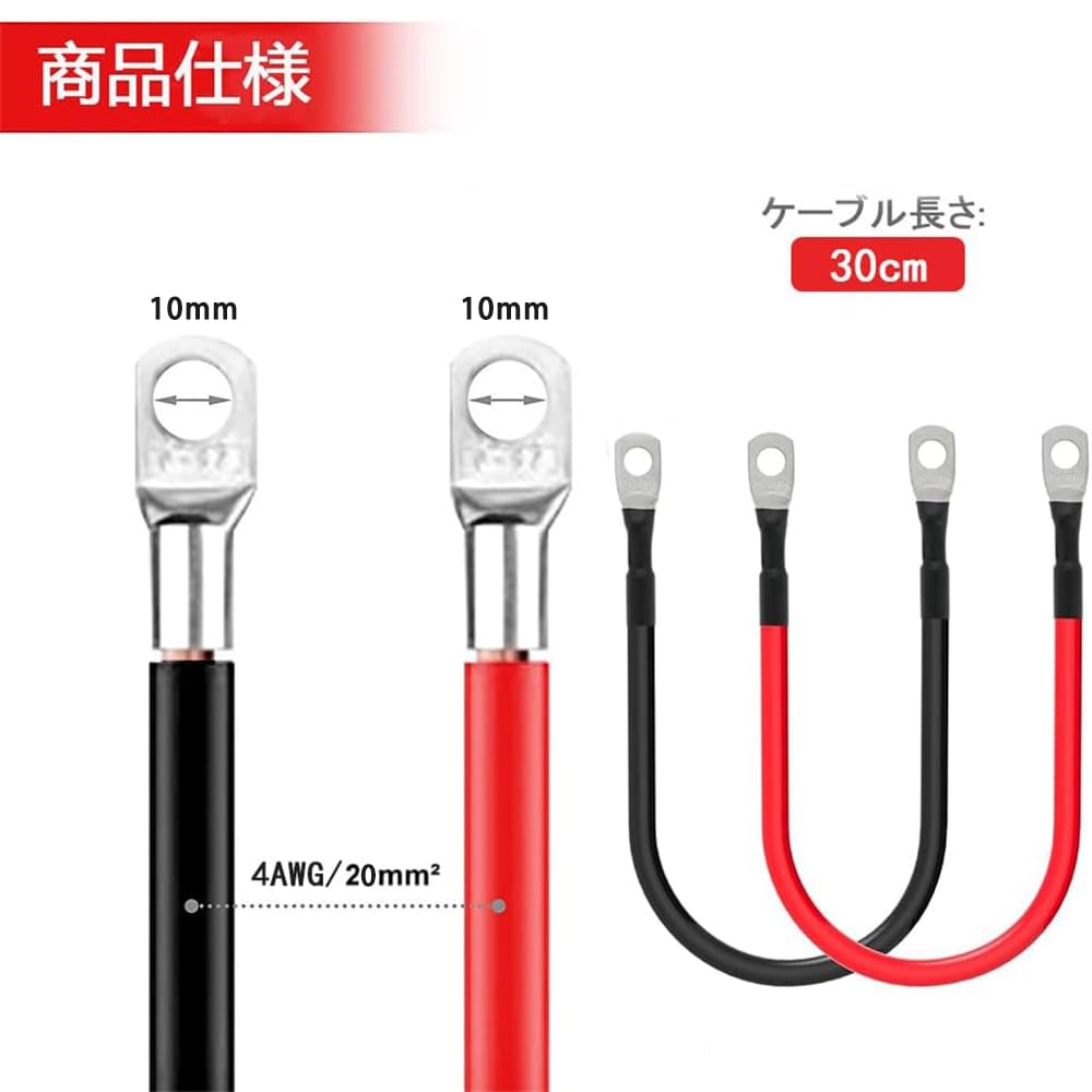 【セット内容】長さ 30cm、入数 黒、赤 各1本、20mm2バッテリーインバーターケーブルセット許容電流値:60A。