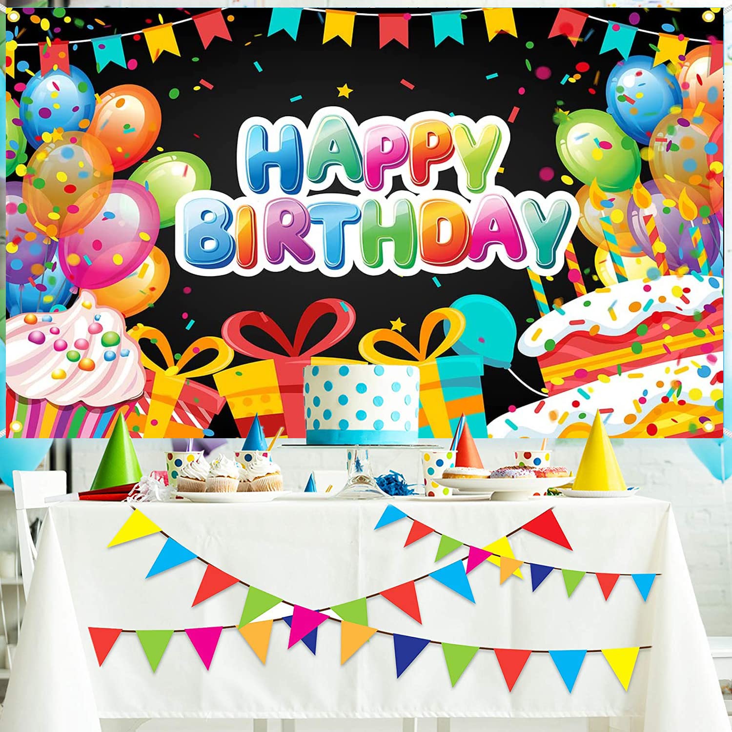 【飾り付け簡単】リボンを通してつり下げて窓や壁に飾りつけすることが可能で、面倒な作業がなく、たった1枚飾るだけで、おうちがパッと誕生日感が出てくれます。