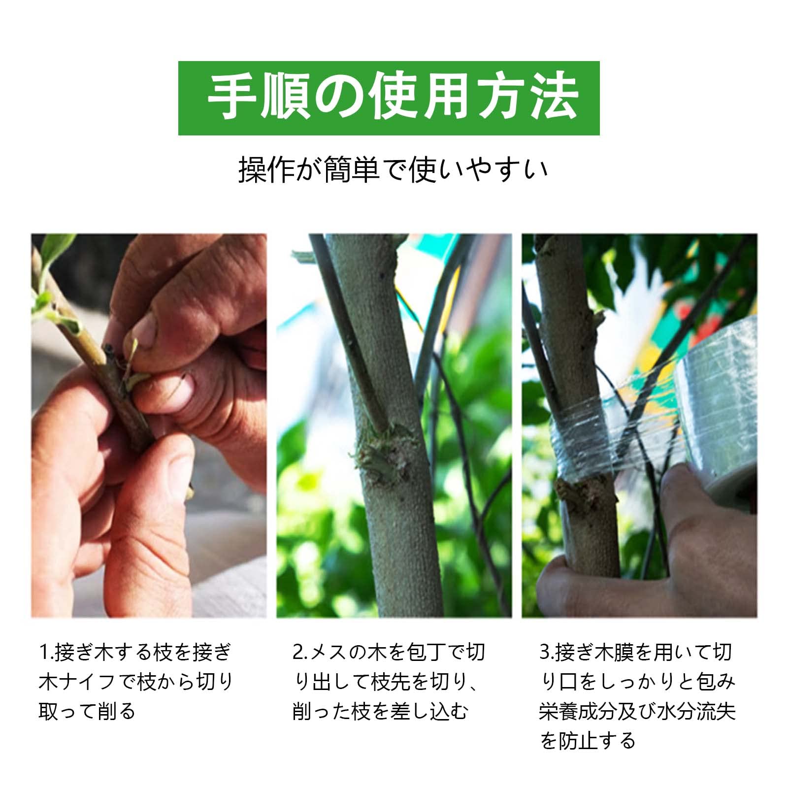 【サイズ】接ぎ木用フィルムは長さ100m、2巻入りで、接ぎ木と台木を過度の水切れから保護します。 幼植物の生存率を向上させ、人件費を大幅に削減することができます。