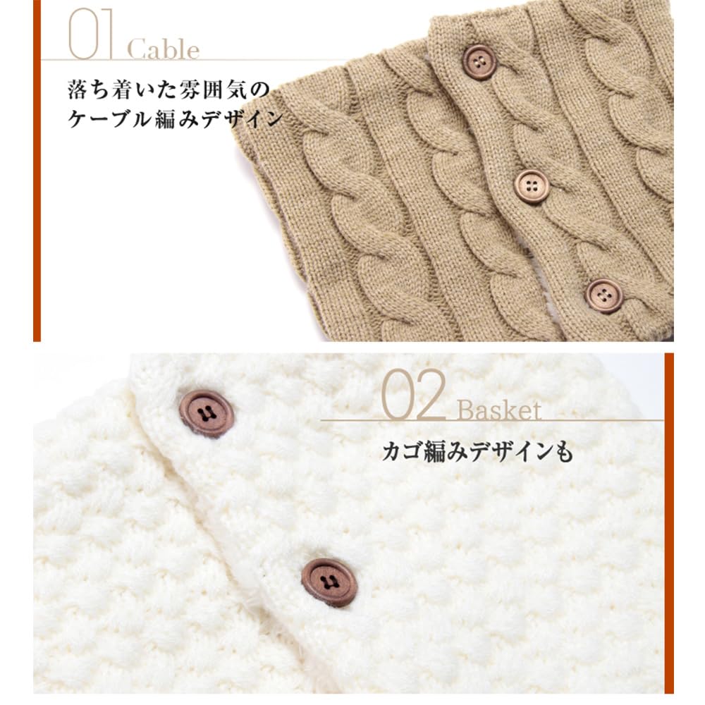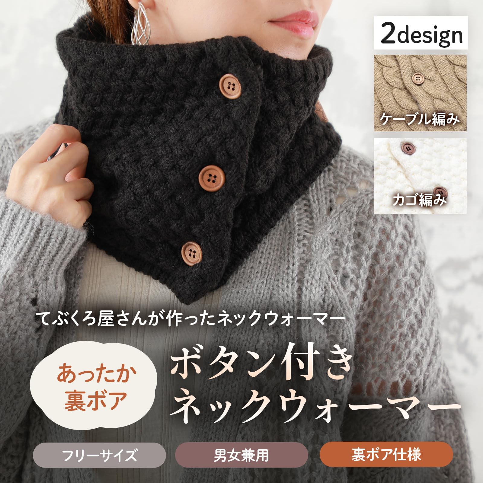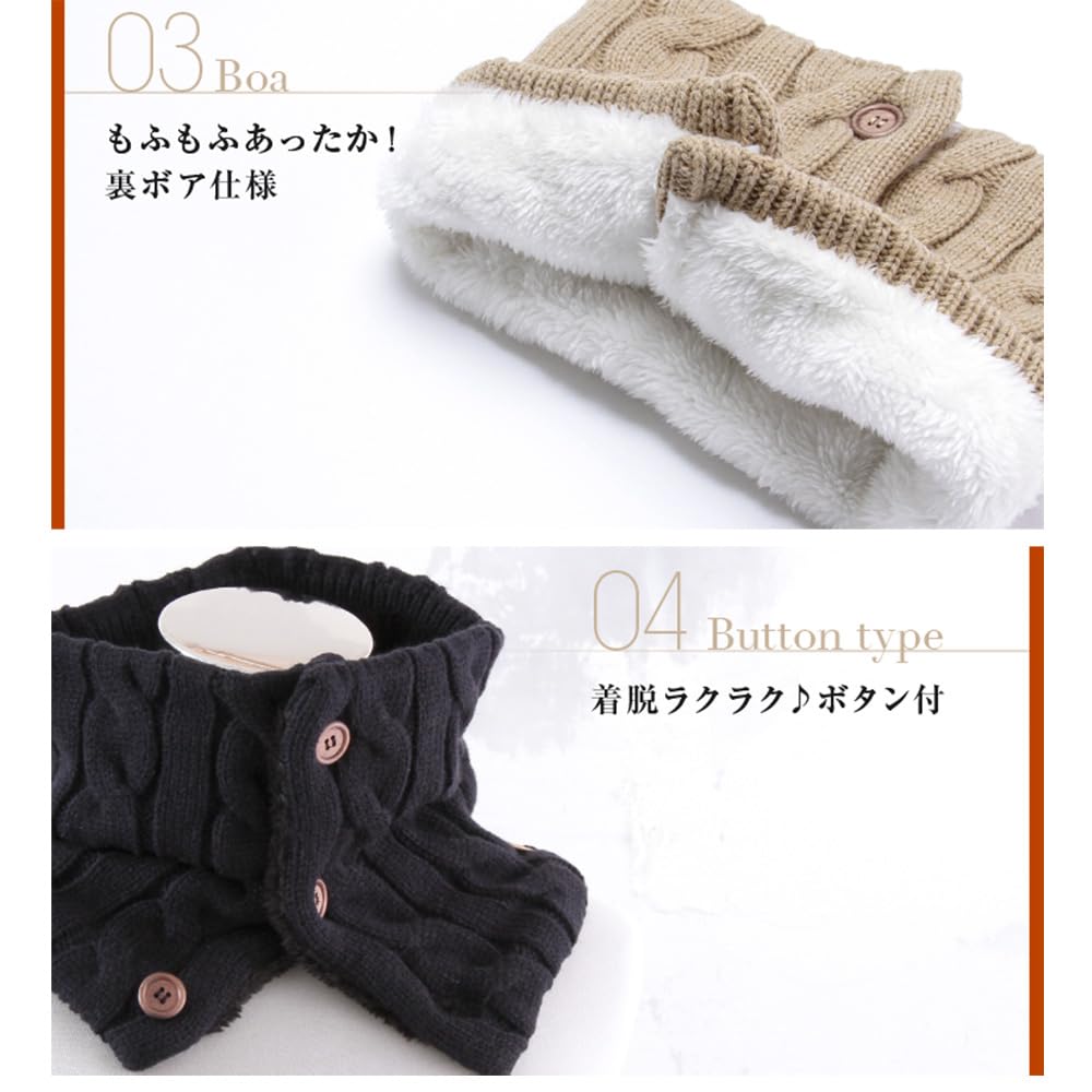[GlovesDEPO] あったか裏ボア ボタン付きネックウォーマー ケーブル編み&カゴ編み ★品質 表:アクリル100%、裏:ポリエステル100% ★サイズ 縦:約20cm 横:約26cm ★生産国:中国