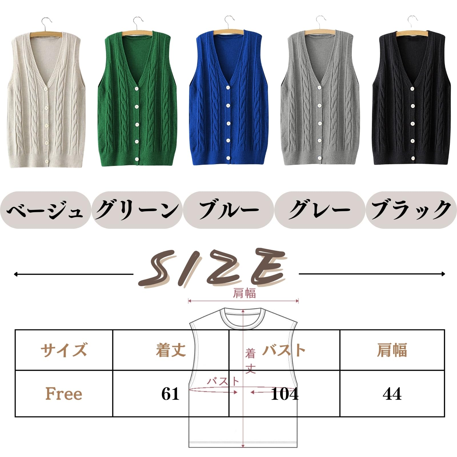 【努力特価】[SeiunAn] ニットベスト レディース セーター ロングベスト 秋冬春 前開き ノースリーブ ケーブルニット Vネック 薄手 大きいサイズ ゆったり 韓国 おしゃれ トップス 重ね着 ボタン 女子 通勤 きれいめ ジレ