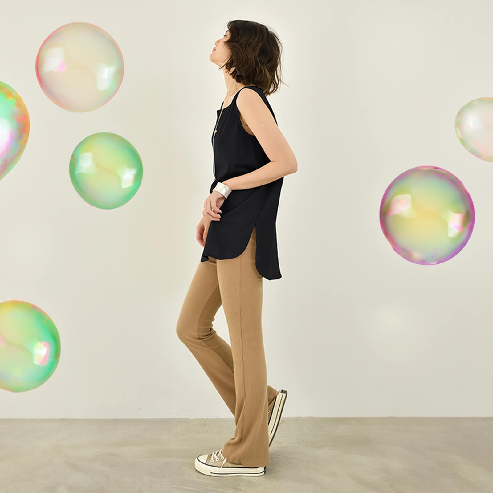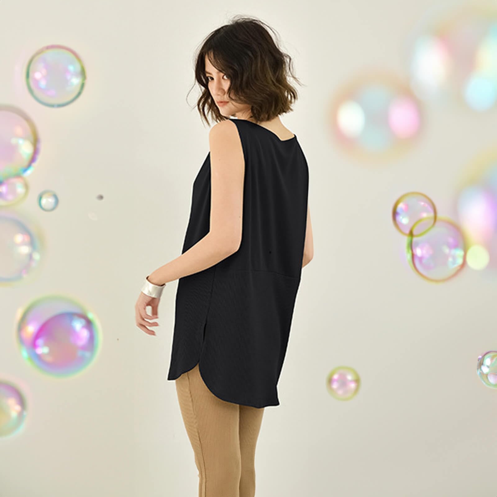 Mサイズ(42-53kg)。Lサイズ(53-60kg)。XLサイズ(60-68kg)。レイヤード インナーが可能な長めデザイン。ゆったりとしたLサイズで、タンクトップ レディース 大きいサイズ向けに設計されたロングタンクトップ レディースです。柔らかく滑らかな素材を使用し、チュニック丈で重ね着にも最適。お手持ちのトップスとのレイヤードで一層のおしゃれを楽しめます。