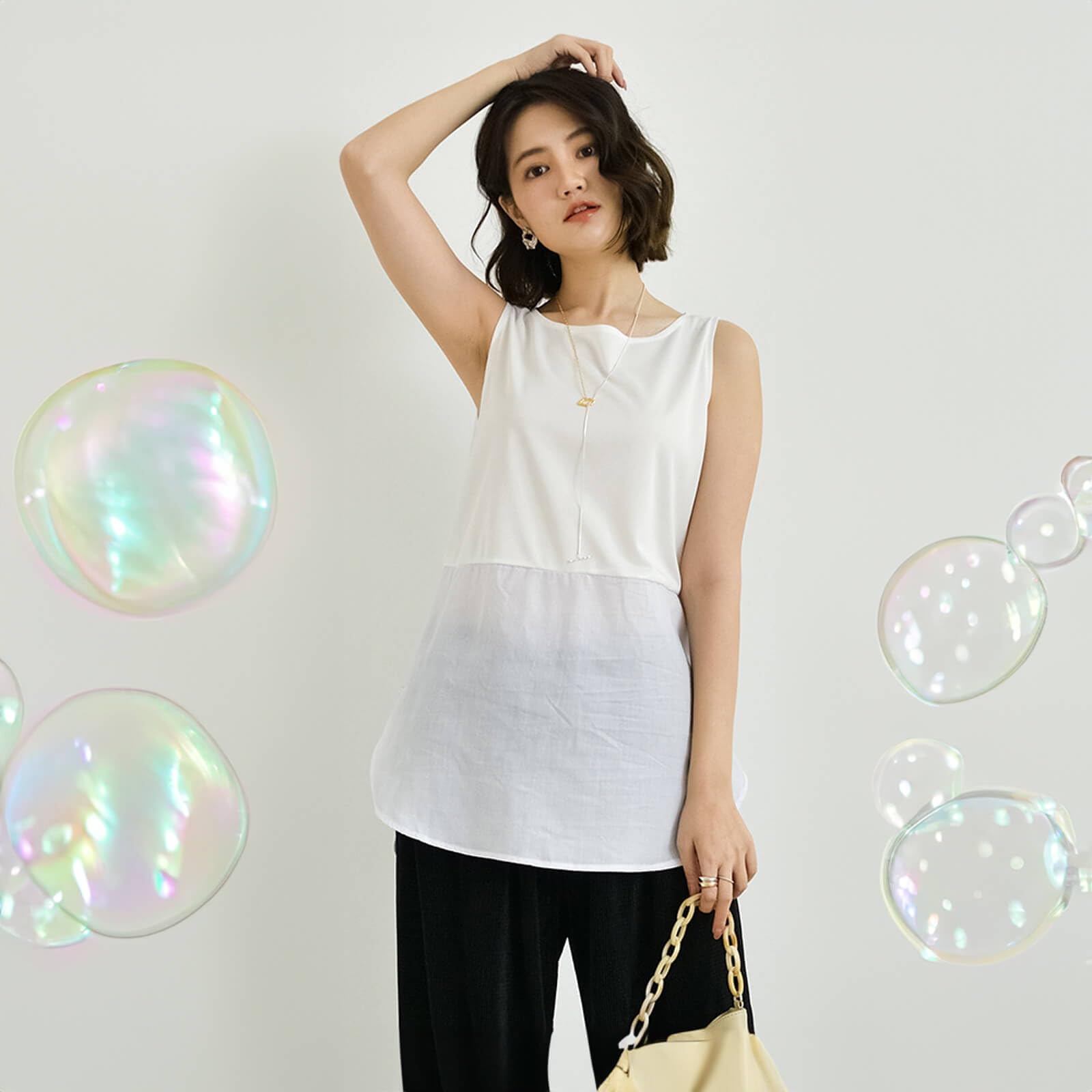 【在庫のみ】[fourfivesixはる] タンクトップ レディース ロングタンクトップ レイヤードTシャツ トップス レディース レイヤードトップス 重ね着 レイヤード コーデ