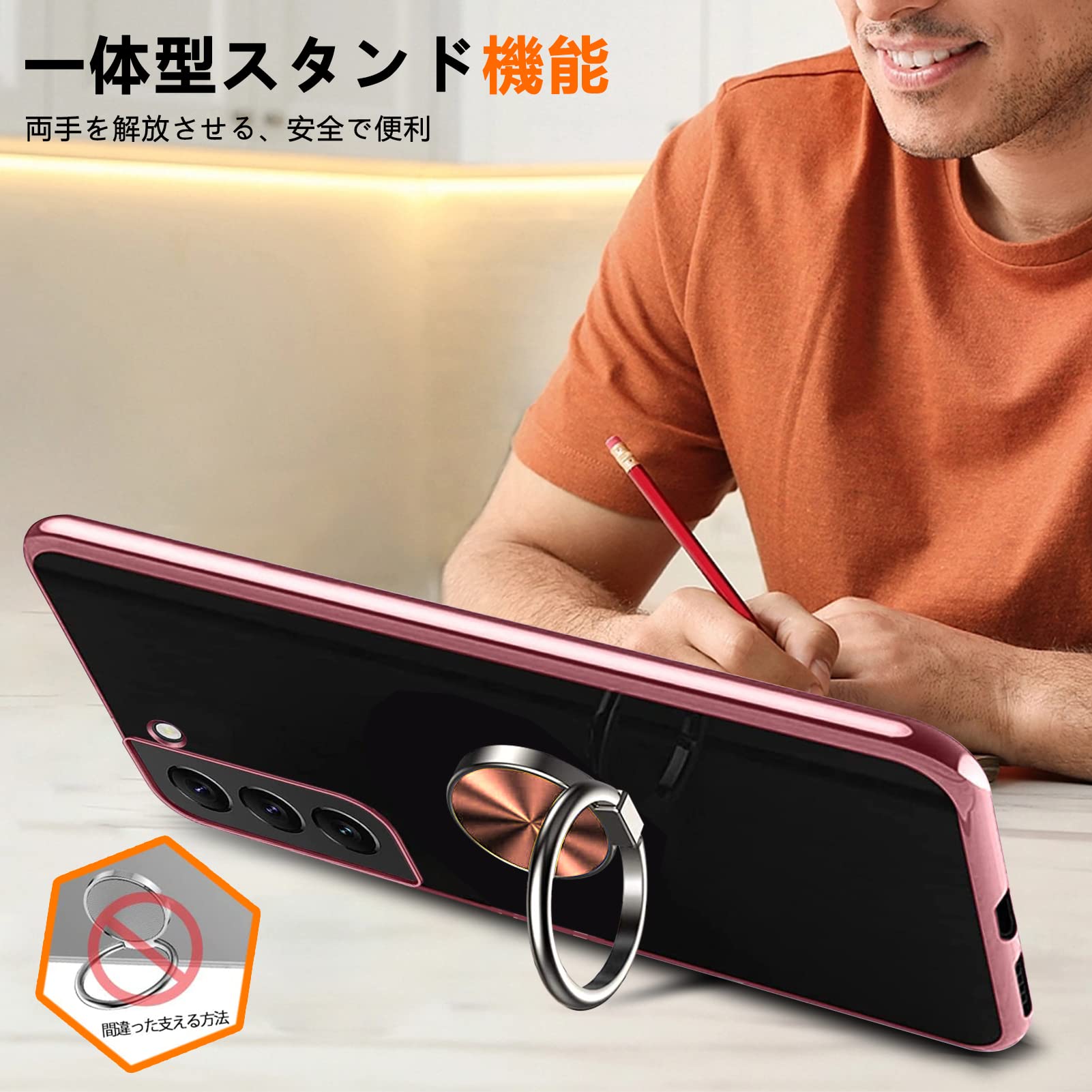 【在庫のみ】iPhone XR 用 ケース リング付き クリア 耐衝撃 スタンド機能 透明 TPU 車載ホルダー対応 落下防止 防塵 薄型 軽量 一体型 変形防止 全面保護カバー アイフォン XR 用 ケース ピンク W-YXZH-07-06