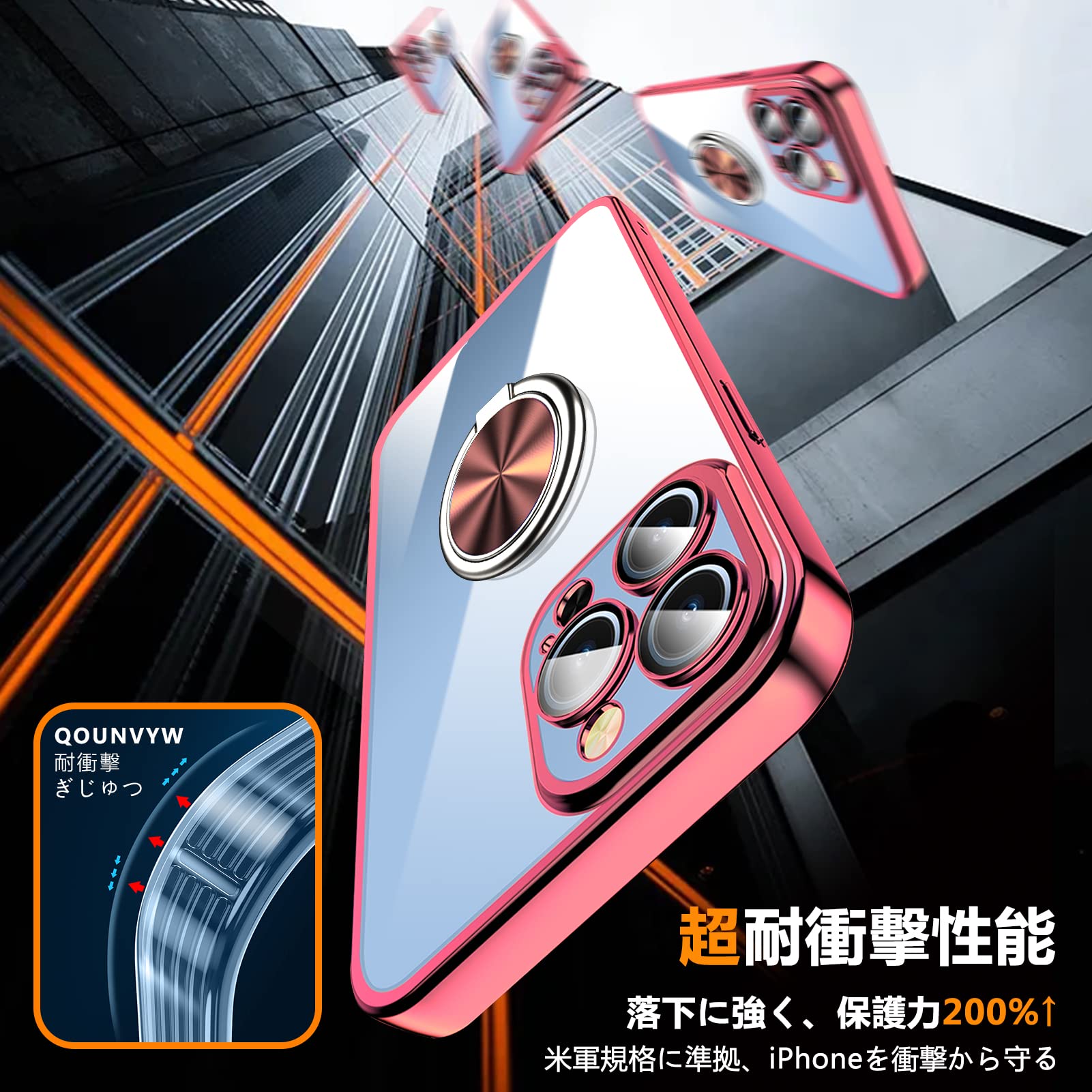 iPhone XR 用 ケース リング付き クリア 耐衝撃 スタンド機能 透明 TPU 車載ホルダー対応 落下防止 防塵 薄型 軽量 一体型 変形防止 全面保護カバー アイフォン XR 用 ケース ピンク W-YXZH-07-06
