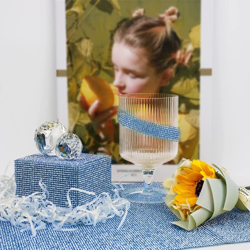 ラインストーン シール [12×20㎝]2枚入り デコシール 自己粘着ラインストーンシール 修正工芸品 電話 衣類 車 スマホ DIY スワロフスキー シール クリスタル キラキラシール 熱接着タイプ ライトブルー