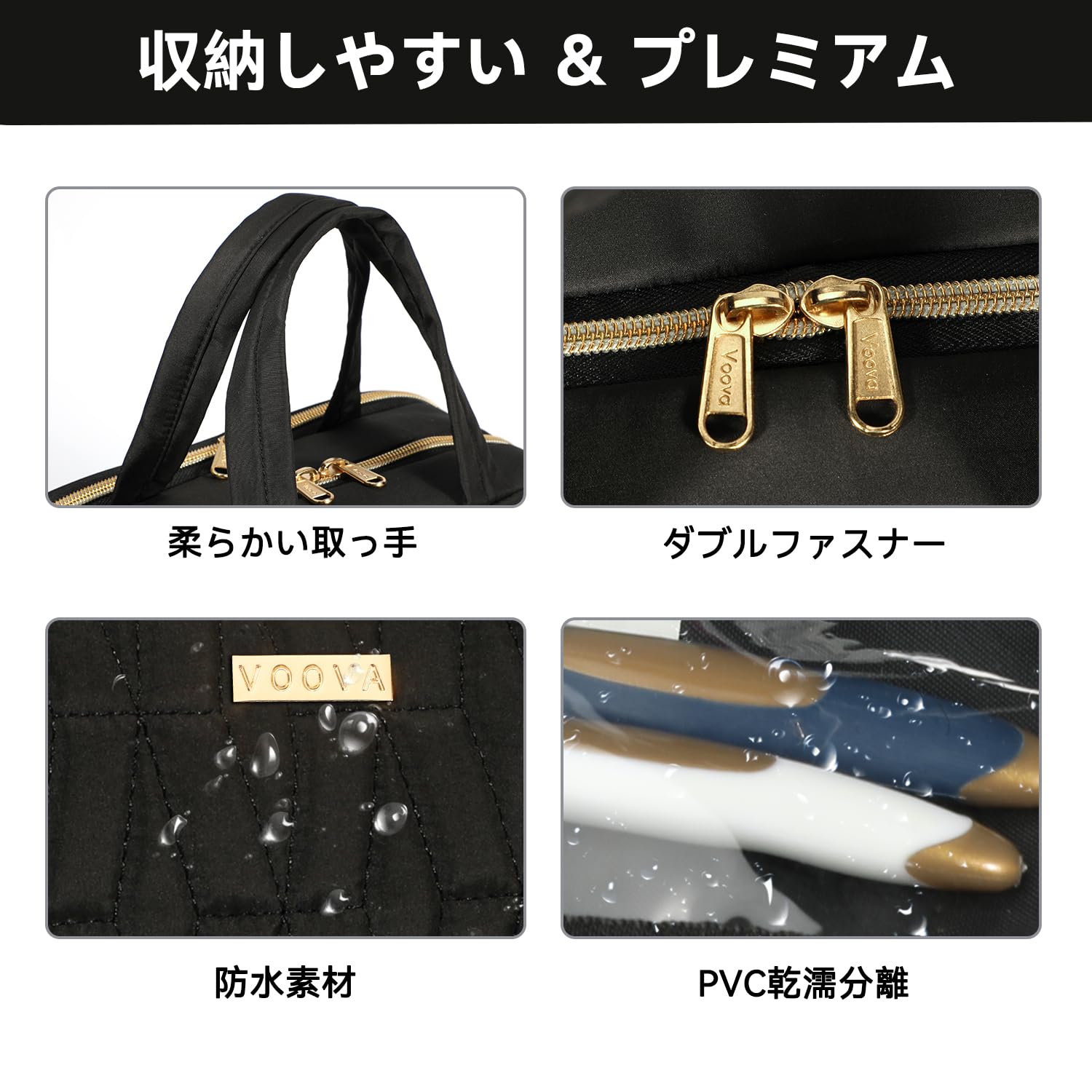 【特価処分】Voovaトラベルポーチ 吊り下げ ポーチ トイレタリーバッグ フック付き 大容量 PVC防水 化粧ポーチ メイクポーチ 乾湿分離 旅行用ポーチ トラベル おしゃれ ハンギングポーチ 洗面用具、化粧品、トラベルグッズ収納可能 手提げ軽量 男女兼用 出張、旅行、温泉、日常使いなどに最適,ブラック