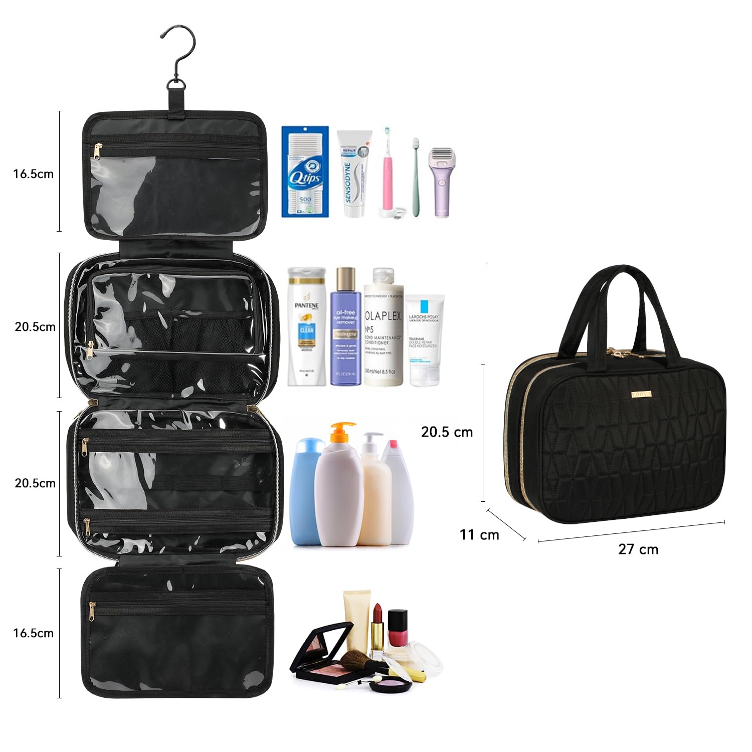 Voovaトラベルポーチ 吊り下げ ポーチ トイレタリーバッグ フック付き 大容量 PVC防水 化粧ポーチ メイクポーチ 乾湿分離 旅行用ポーチ トラベル おしゃれ ハンギングポーチ 洗面用具、化粧品、トラベルグッズ収納可能 手提げ軽量 男女兼用 出張、旅行、温泉、日常使いなどに最適,ブラック