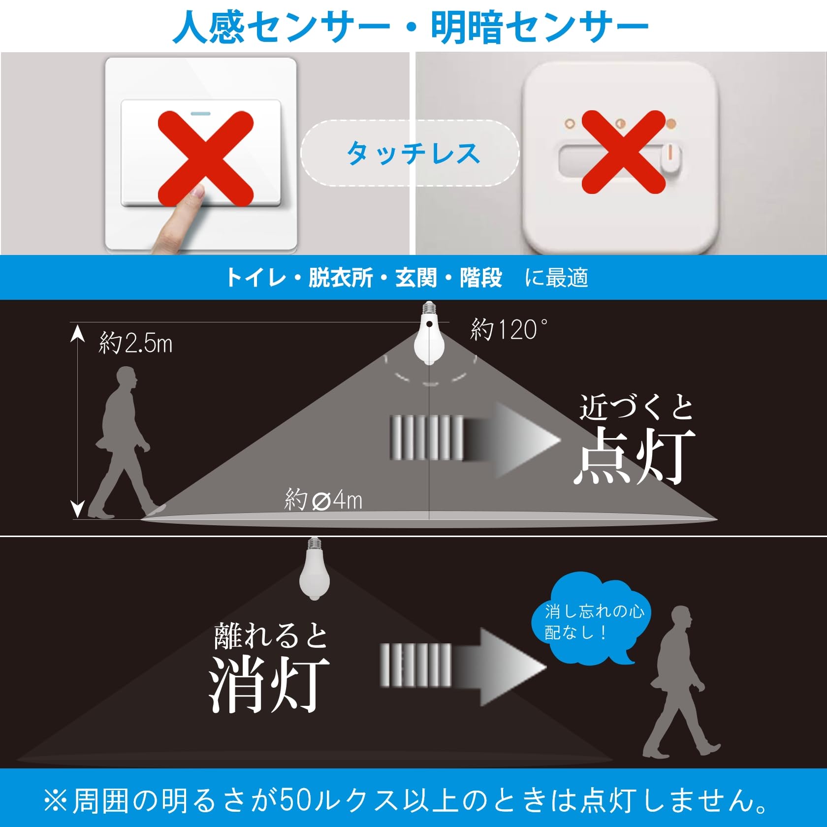 特徴 モーションセンサー, 自動点灯・自動消灯