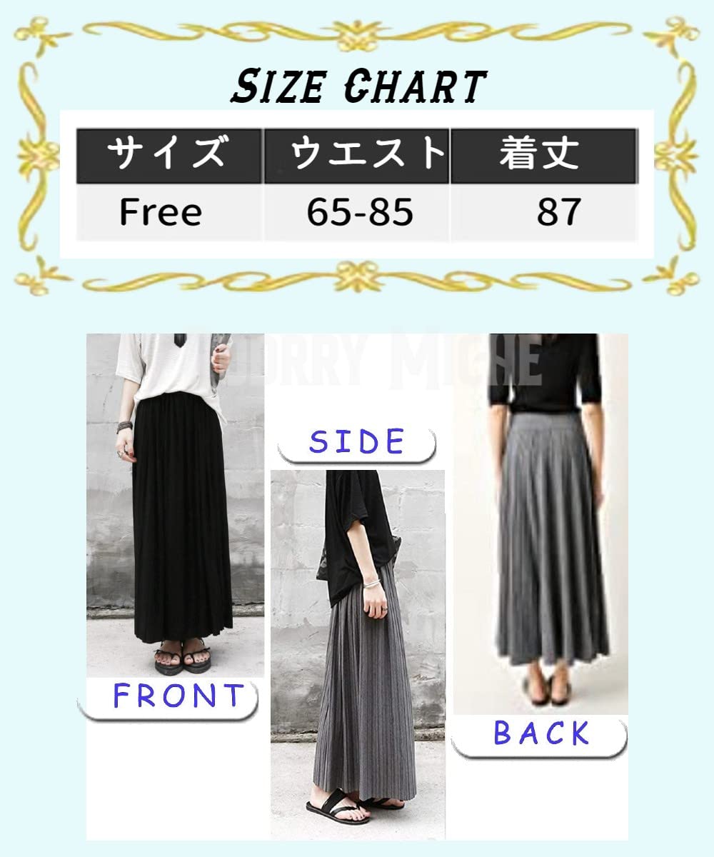 【新着特価】[ロドリーミシェ] ロング フレア ギャザースカート ハイウエスト ウエストゴム 体型カバー
