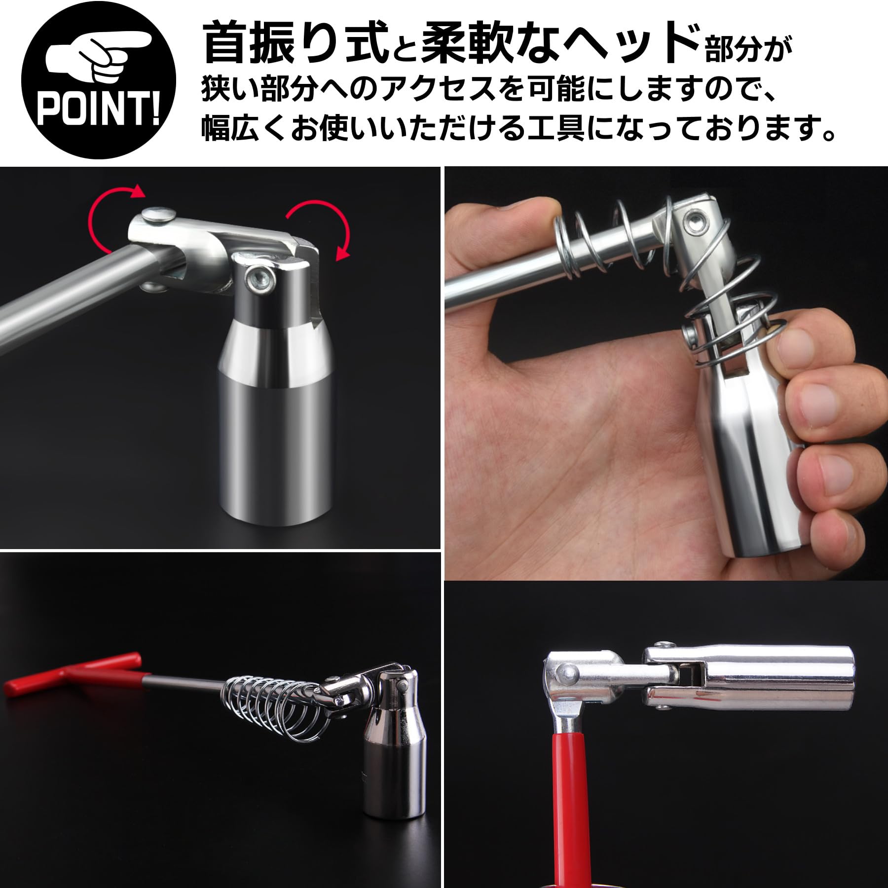 ◆【プラグレンチ】首振り式と柔軟なヘッド部分が狭い部分へのアクセスを可能にしますので、幅広くお使いいただける工具になっております。