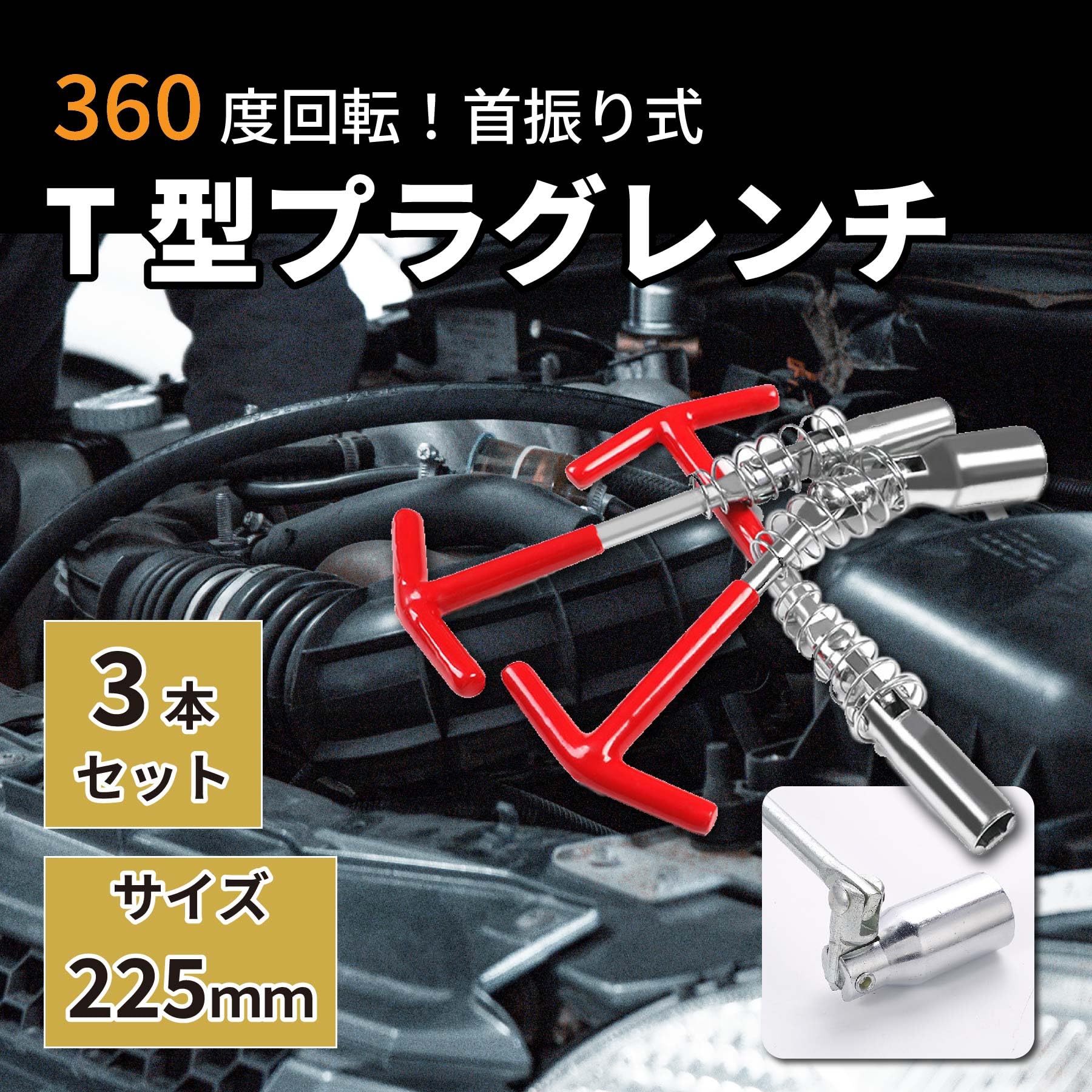 T型プラグレンチ 首振り式 スパークプラグ 360°回転 バイク 自動車 整備 工具 (長さ225mm) 14mm 16mm 21mm 3本セット