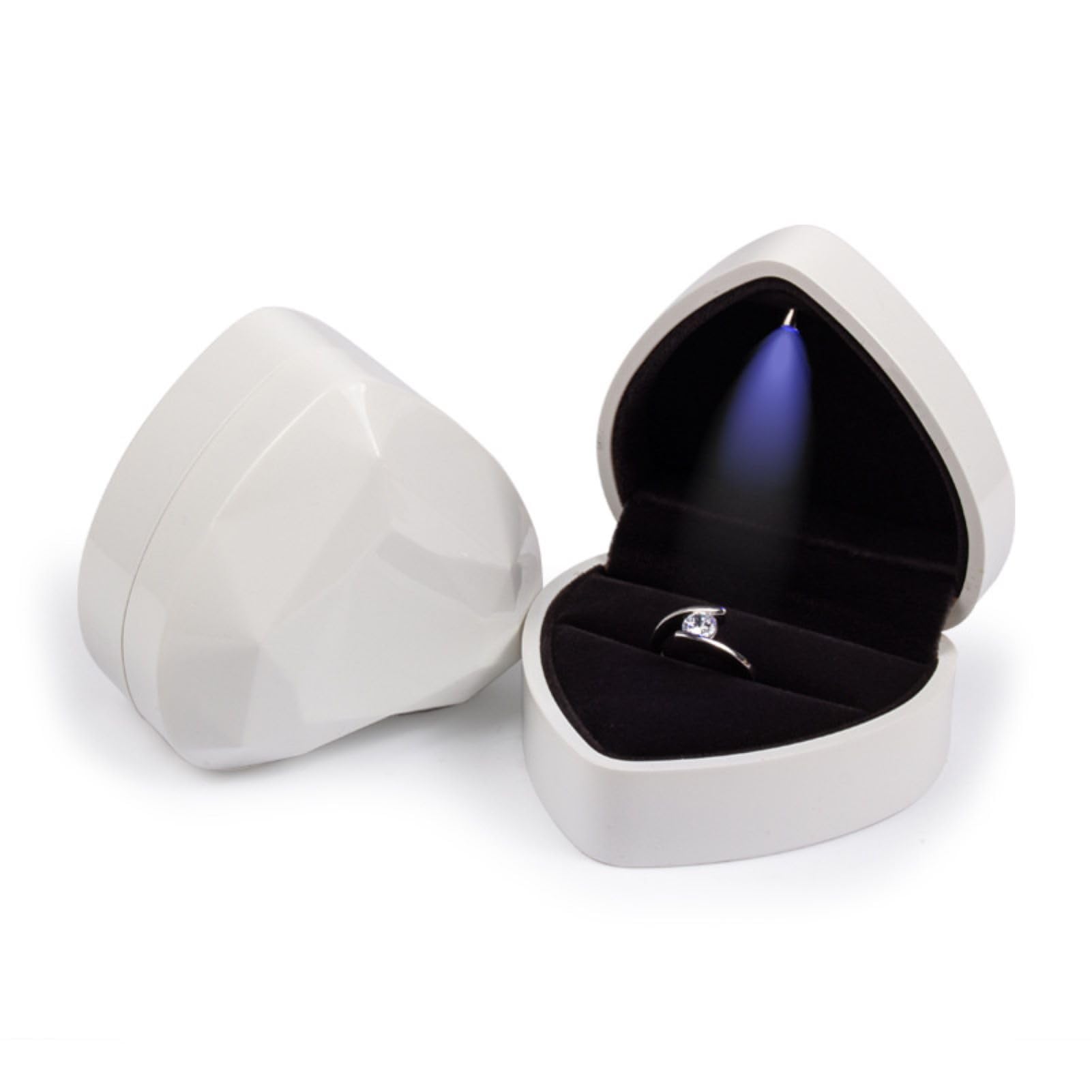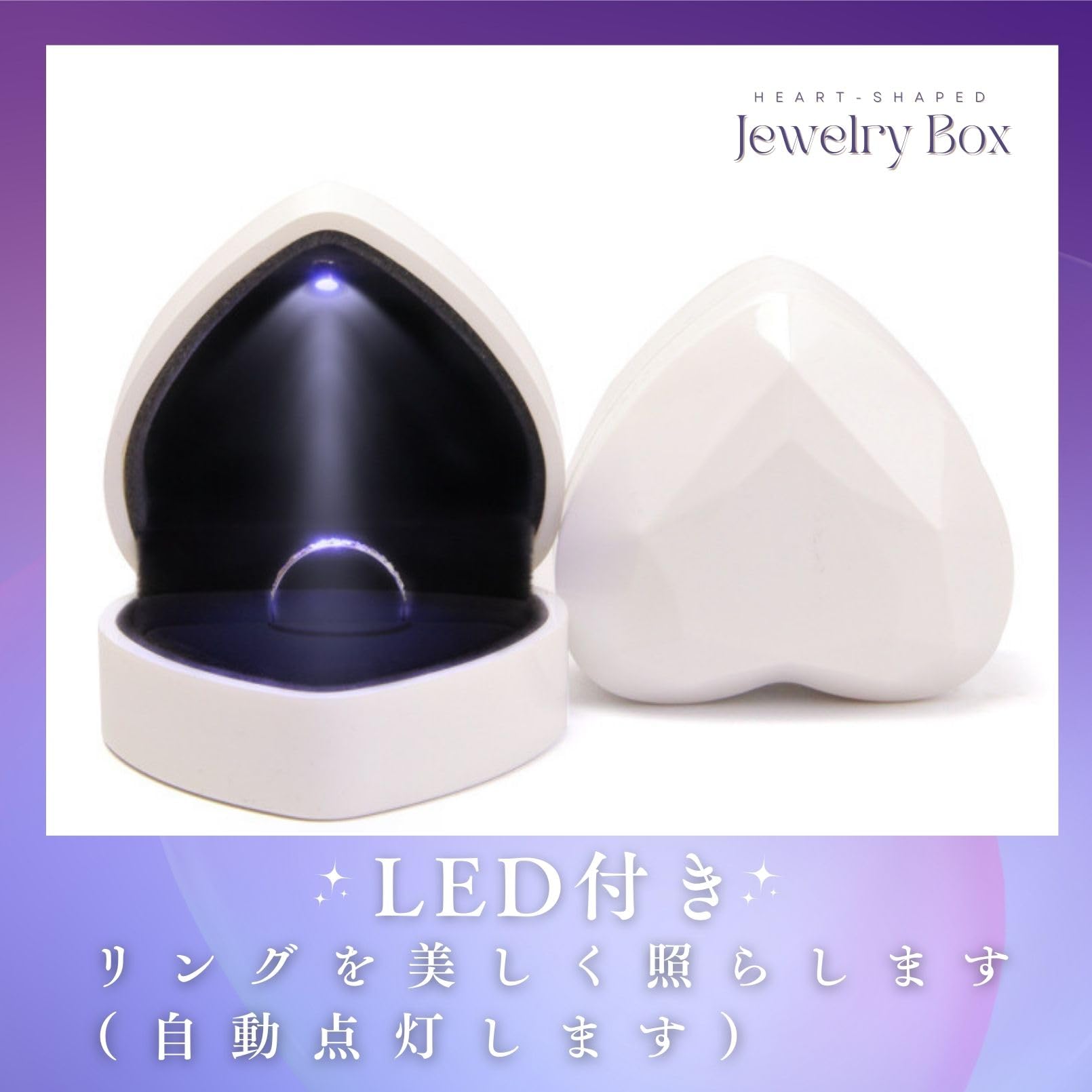 ハート型のデザインとLEDライト付きのこの指輪ケースは、誕生日や記念日、