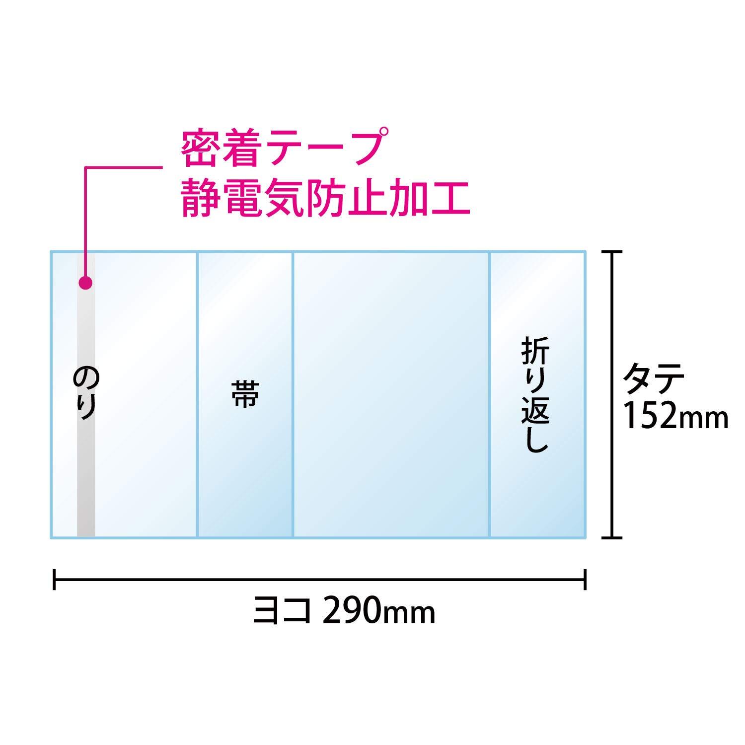 【サイズ】W290xH152mm 50ミクロン厚 テープ付。ライトノベル(108x149ミリ程度)の本に装着可能です。