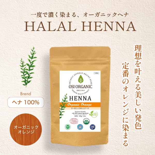 天然ヘナ100%!OSI ORGANIC ???? ?????? ハラールヘナ HALAL HENNA 3.6oz 取扱説明書付 オーガニックオレンジ ORGANIC ORANGE 100グラム (x 1)