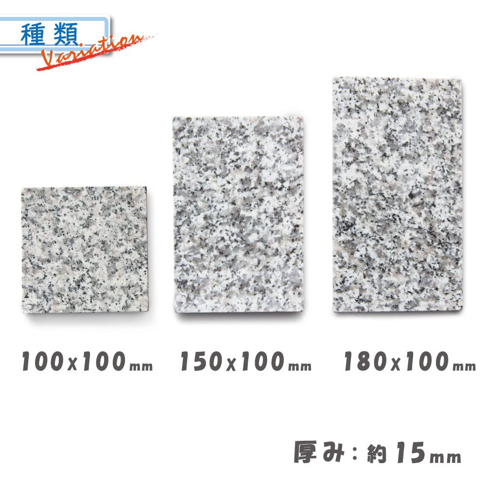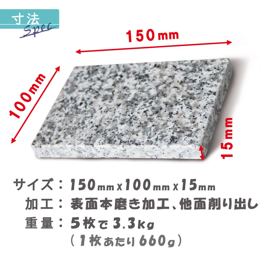 御影石 平板 15×10cm 5枚セット 本磨き加工 サイズ:約150×100×15mm 商品重量:約3.3kg(1枚:約0.6kg) 加工1:表面本磨き加工(ぴかぴかつるつる) 加工2:側面は切削加工(削り出し加工) 入数量:5枚セット 高級御影石の平板 使い方は自由自在。オーディオボード、スピーカースタンド、ひんやりマット、飾り台、フィギア台、お皿・・・